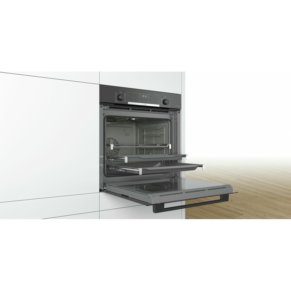 Bosch HBT 457UB0 — это электрический духовой шкаф чёрного цвета. Объём камеры составляет 71 л. Управляется при помощи поворотных ручек и сенсорных кнопок. Освещение галогеновое. Есть семь режимов нагрева, в том числе гриль и конвекция. Система очистки — EcoClean. Уровней установки противней — пять, в том числе три — на телескопических направляющих. Дверца оборудована амортизатором SoftClose. В комплекте идёт универсальный противень и комбинированная решётка.