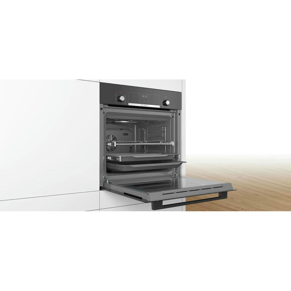 Духовой шкаф Bosch HIJ557YB0R оснащен набором автоматических программ AutoPilot, с которыми легко приготовить даже сложные блюда: система предложит выбрать вес и тип продукта. Температурный режим и воздействие нагревательных элементов запрограммированы с учетом особенностей жарки или запекания птицы, стейков, гуляша, мясного рулета, поэтому при соблюдении рекомендаций, результат будет всегда превосходным. Конвекция «3D-горячий воздух» дает возможность готовить одновременно на нескольких уровнях без смешивания запахов.