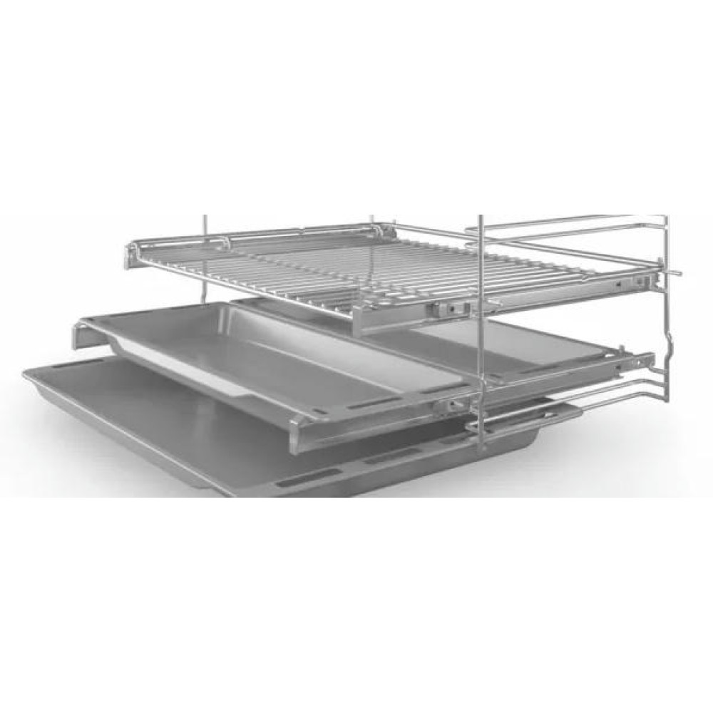 Духовой шкаф BOSH HIJN10YW0R оснащен режимом гриля с конвекцией что позволяет готовить при более низких температурах за счёт одновременной работы нагревательного элемента и конвекции. Эта опция прекрасно подходит для запекания больших кусков мяса. Телескопические направляющие на двух уровнях обеспечат безопасное выдвижение горячего противня, гарантируя комфортную эксплуатацию прибора. В дверцу встроен амортизатор SoftClose, который обеспечивает плавное и бесшумное закрытие