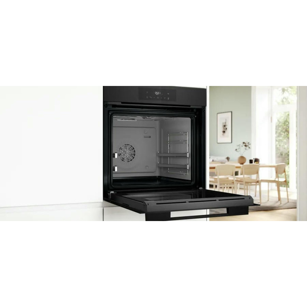 Духовой шкаф Bosch HJG852YT0T имеет внутренний объём 76 литров предоставляет простор для приготовления больших блюд и многослойных запеканок, позволяя использовать несколько уровней одновременно. Для удобства загрузки предусмотрены телескопические направляющие на двух уровнях: они обеспечивают плавное выдвижение противня и упрощают контроль за процессом. Галогенное освещение даёт яркое, равномерное освещение рабочей камеры, позволяя наблюдать за результатом без лишних усилий, а комбинированная решётка и универсальный противень входят в базовый комплект, дополняемый специальным противнем для Air Fry.