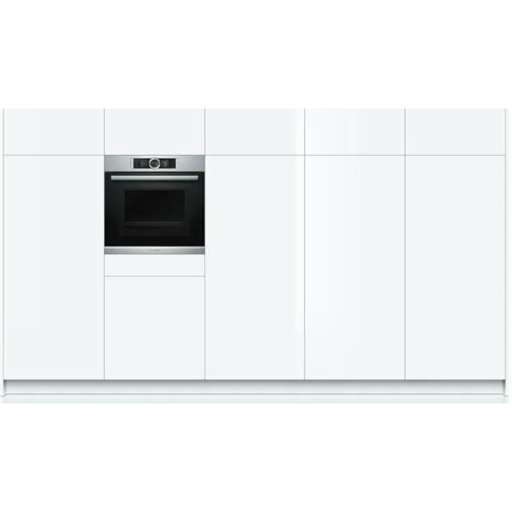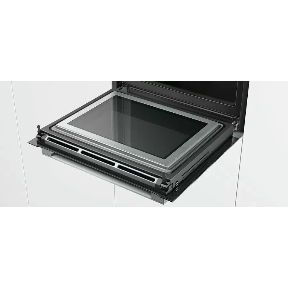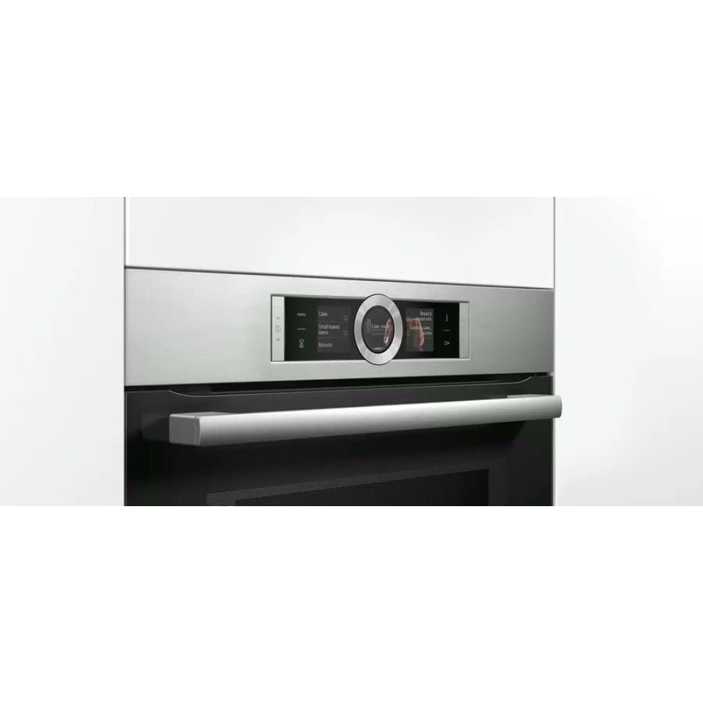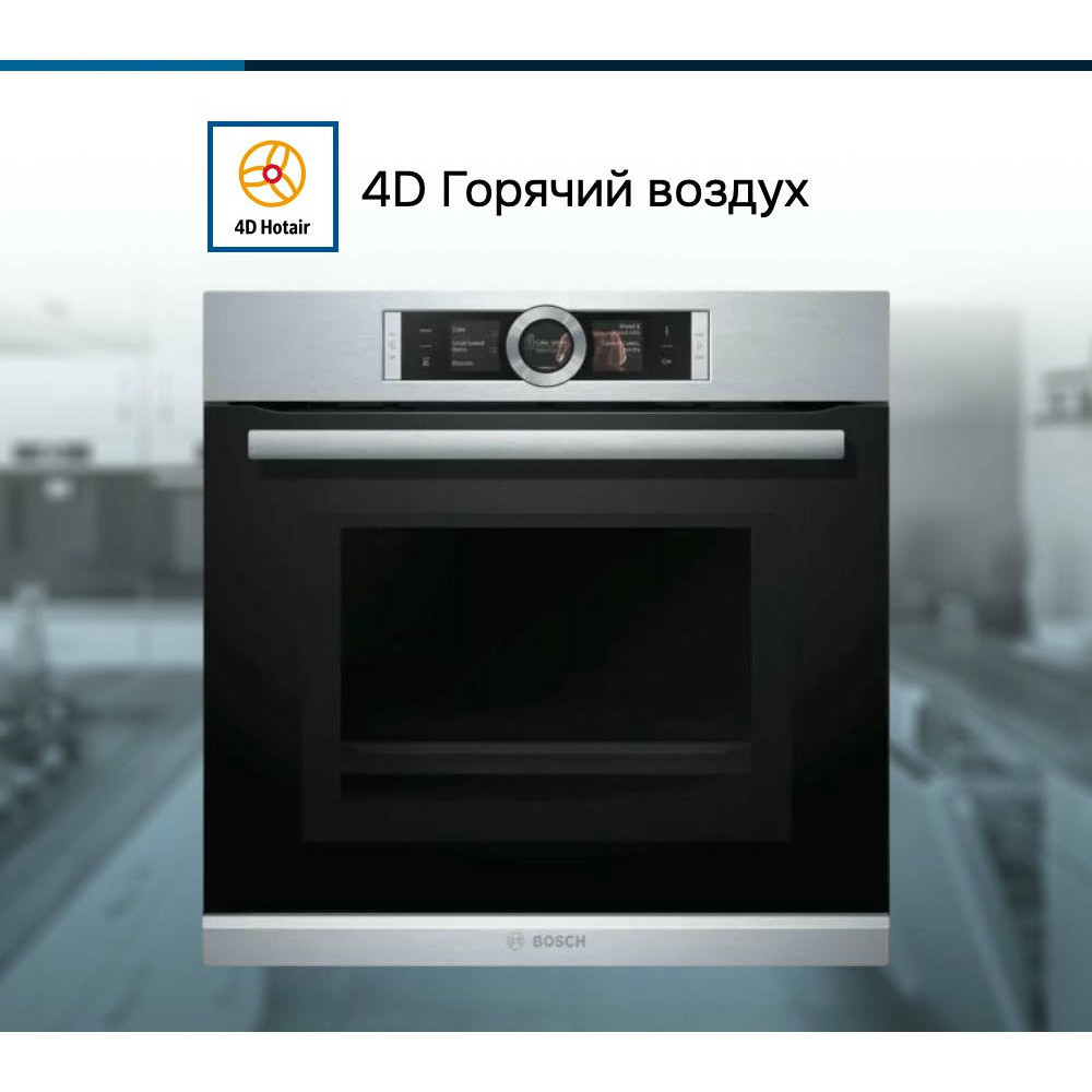 Духовой шкаф BOSCH HMG636RS1 оснащен функцией 4D Горячий воздух, которая представляет собой совместную работу кольцевого нагревательного элемента на задней стенке духового шкафа и конвекционного вентилятора, который приводится в действие BLDC мотором. Вентилятор вращается в обе стороны, за счёт чего происходит равномерное разогревание на нескольих (до 4-х) уровнях одновременно.