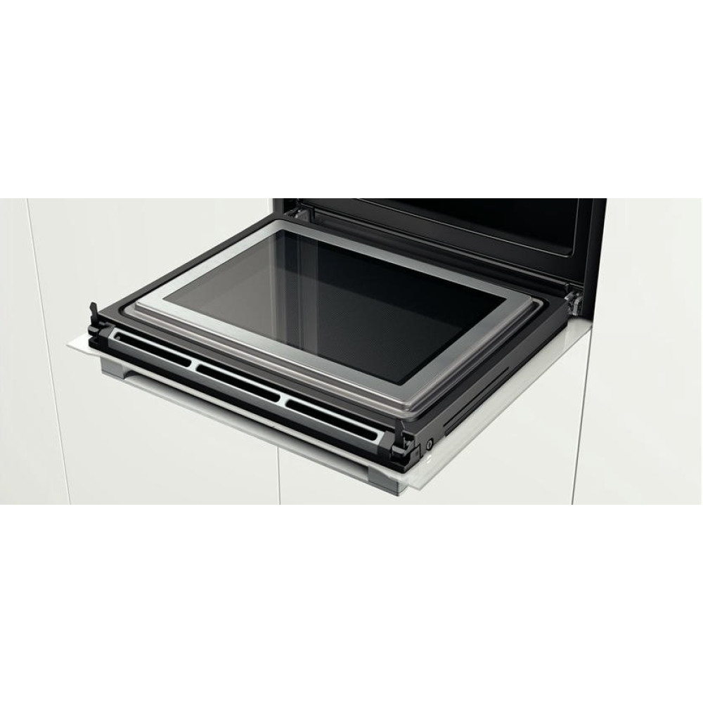 Микроволны можно использовать отдельно или в комбинации с традиционными режимами нагрева. Дверца духовки с амортизатором обеспечивает бесшумное и плавное открытие и закрытие даже при резком движении. Многофункциональные часы оснащены будильником и таймером. Трехслойное остекление повышает теплоизоляцию внутри камеры. LED-освещение позволяет контролировать приготовление без открытия дверцы.
