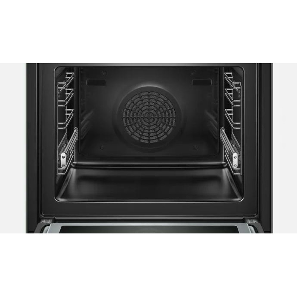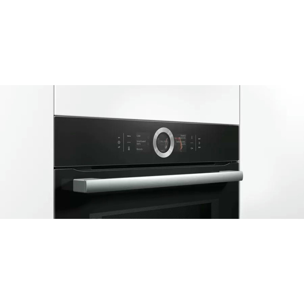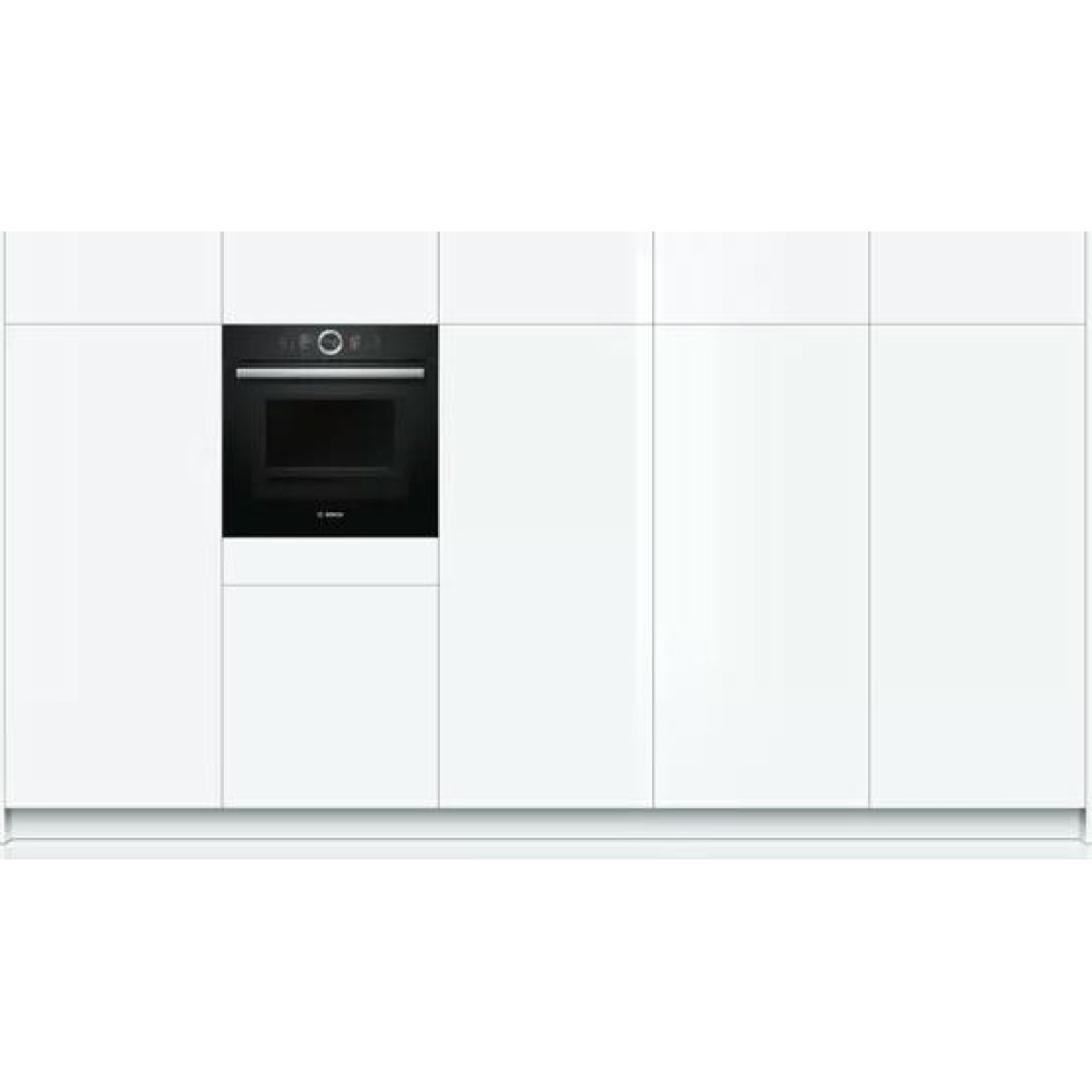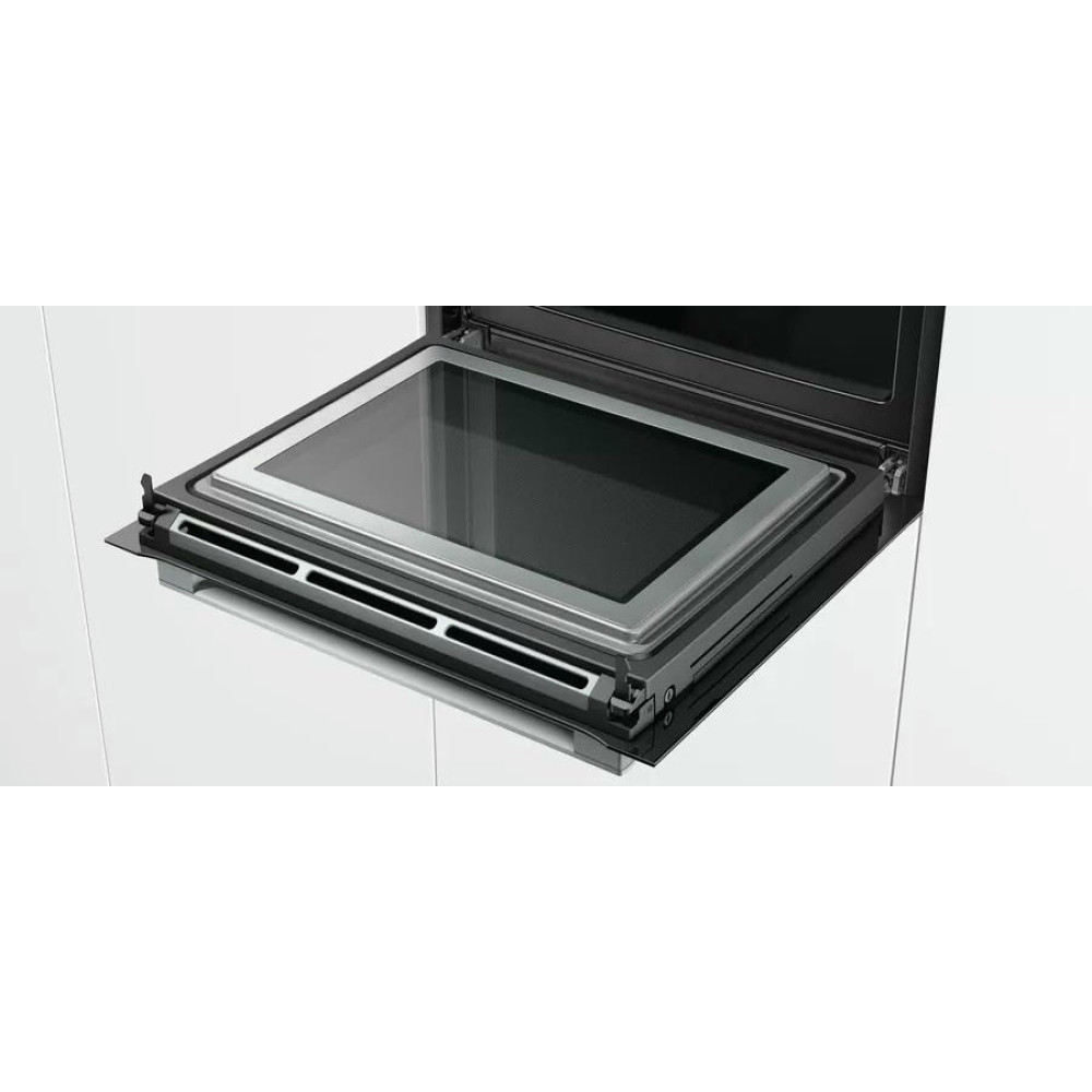Духовой шкаф BOSCH HMG6764B1 оснащен режимом горячий воздух Eco, щадящий режим приготовления на одном уровне без предварительного разогрева. Блюдо пофазно приготавливается с помощью остаточного тепла. Эффективнее всего использовать нагрев от 125 до 275 °C.