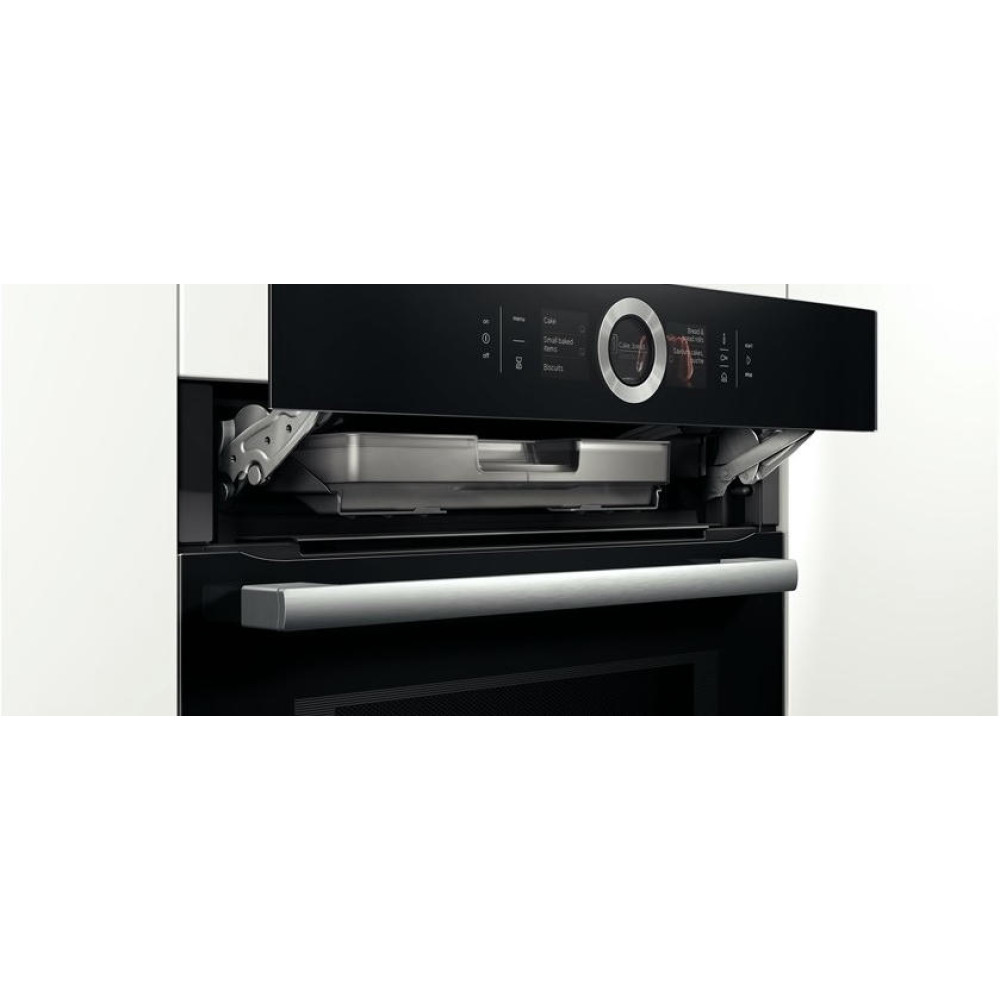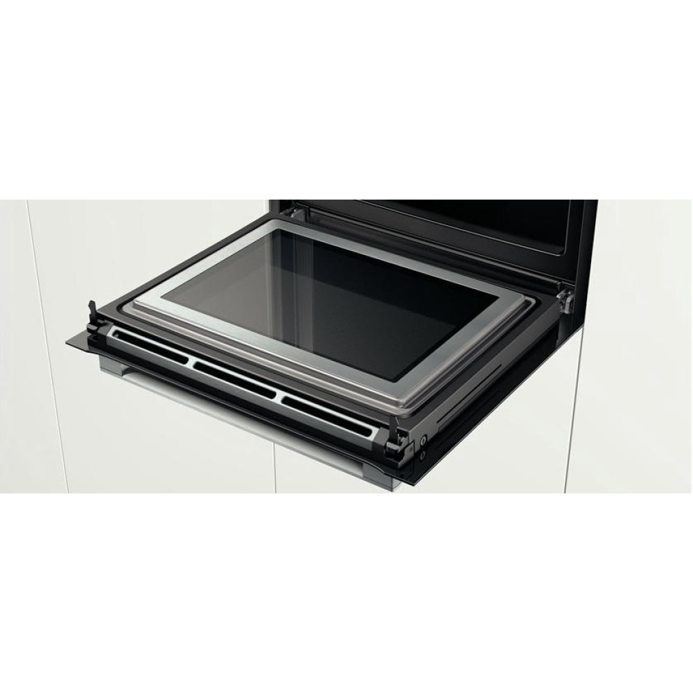 Независимый духовой шкаф HNG6764B1 оснащен 15 режимами нагрева, встроенной СВЧ и пароваркой. Выдвижная панель управления и спрятанный за ней резервуар для воды — конструкторская особенность модели. Минималистичный дизайн дополнен широким функционалом и интеллектуальным управлением. Сенсор готовности выпечки и многоточечный термощуп помогают контролировать готовность блюда изнутри. Четырехслойное остекление и вентилятор охлаждения снижают уровень нагрева внешней поверхности. Остаточное тепло можно использовать для поддержания температуры готового блюда или подогрева.
