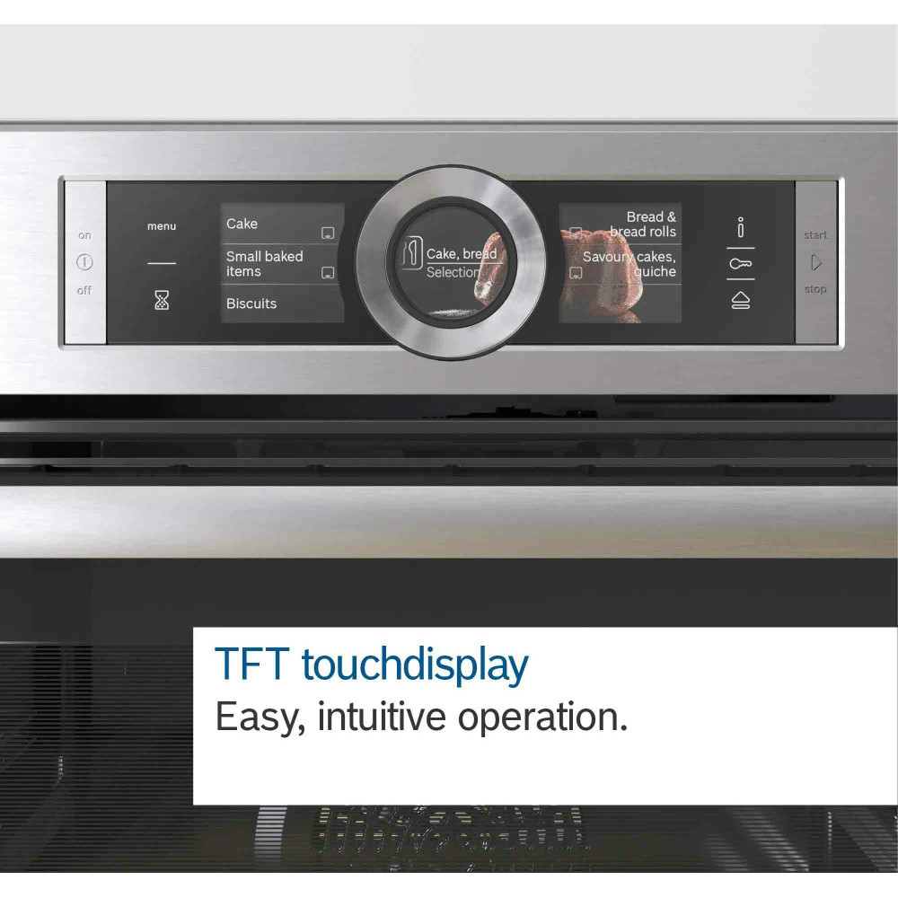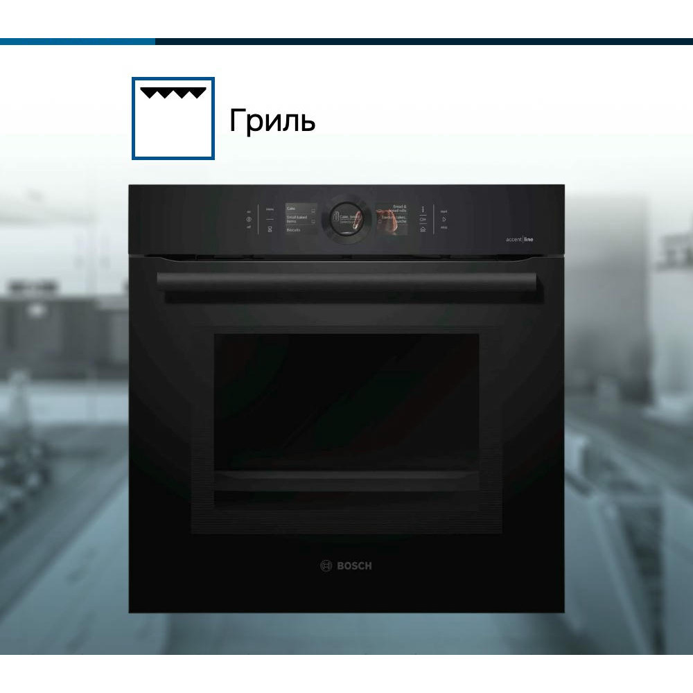 Духовой шкаф BOSCH HNG8764C7 характеризуется стильным оформлением в серебристо-черной расцветке и расширенными возможностями приготовления, включая функцию микроволновой печи с 4 уровнями мощности.