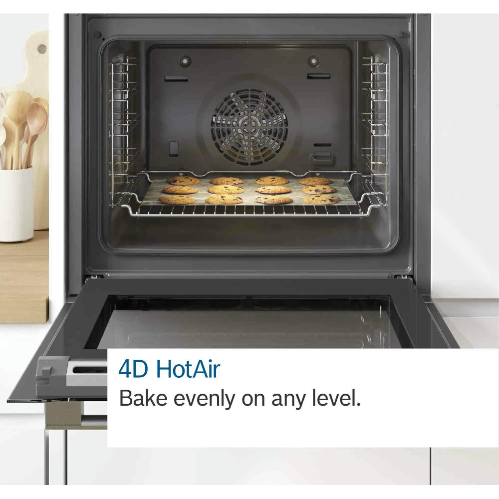 На одном уровне духового шкафа Бош HNG8764C7 расположены выдвижные телескопические направляющие. Благодаря им Вам будет особенно легко ставить тяжелые противни в духовку, а затем доставать их.