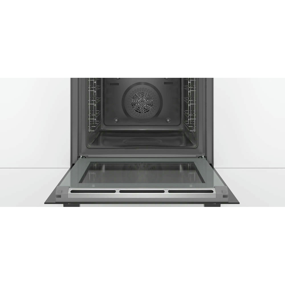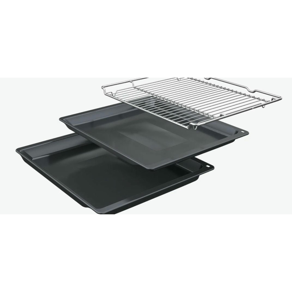 Духовой шкаф Bosch HRA474BB0S оснащена режимом приготовления 3D горячий воздух, он распределяет тепло по всем уровням равномерно. Имеются автоматические программы, при выборе их вам остается только ввести вес продукта, а рецепт блюда уже есть в устройстве. Освещение у модели галогеновое, оно отлично освещает внутреннее пространство.