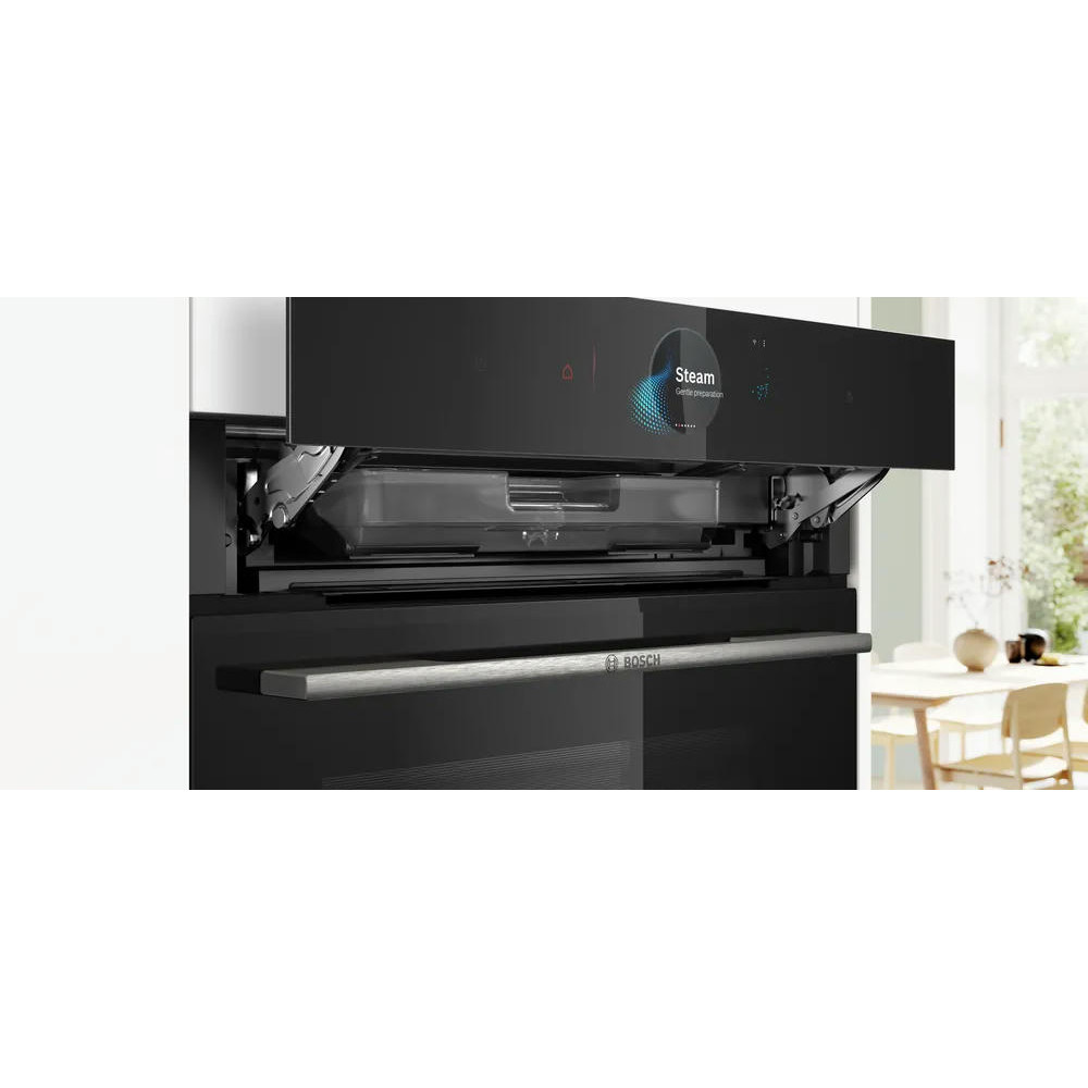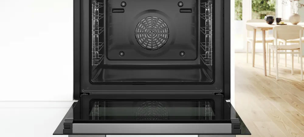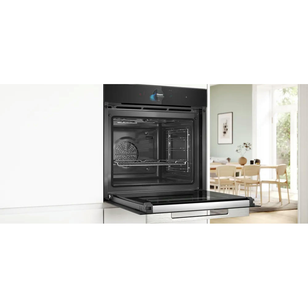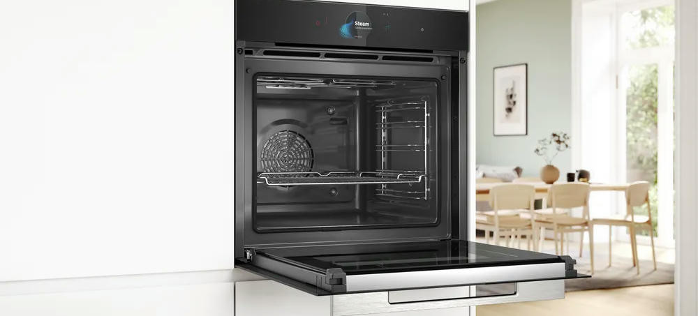 Духовой шкаф оснащен функцией Home Connect, которая позволяет управлять устройством дистанционно через приложение на смартфоне. В арсенале прибора 18 режимов нагрева, включая 4D-горячий воздух, верхний/нижний жар, большой и малый гриль, режим для пиццы, бережное тушение и даже Air Fry для приготовления блюд без использования масла. Автоматические программы и специальные режимы, такие как подъем теста и подогрев готовых блюд, делают процесс приготовления еще более удобным. Многоточечный термощуп PerfectRoast и сенсор для выпечки PerfectBake обеспечивают идеальные результаты при приготовлении различных блюд. Прибор также оснащен системой быстрого разогрева и функцией поддержания температуры. Дверца шкафа откидная, оснащена амортизатором SoftClose для мягкого и бесшумного закрытия. Внутреннее освещение LED обеспечивает хороший обзор содержимого. Очистка прибора осуществляется пиролитическим методом – при высокой температуре грязь превращается в пепел, который легко удаляется.