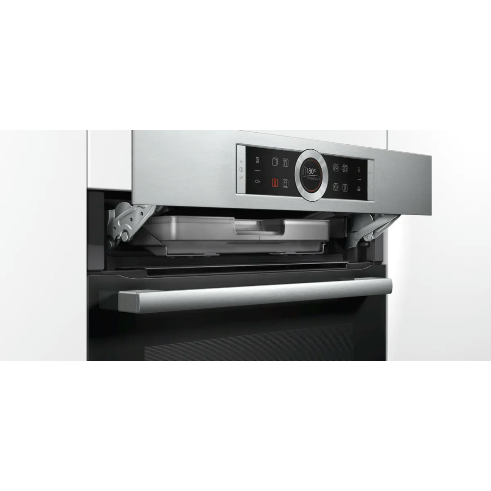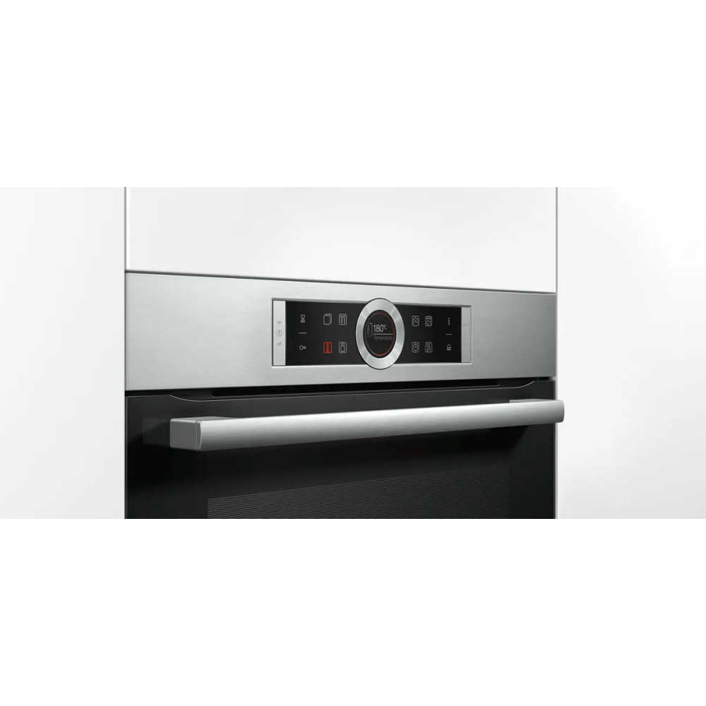Электрический духовой шкаф Bosch HRG6753S2, выпущенный в рамках серии Serie | 8, представляет собой высококачественное устройство, произведенное в Евросоюзе. Этот независимый прибор обладает внутренним объемом 71 литр, что позволяет приготовить большое количество блюд одновременно. Дизайн устройства выполнен в классическом стиле, который отличается простотой и лаконичностью. Отделка из нержавеющей стали придает ему элегантность и современность, а также обеспечивает простоту ухода и долговечность. Духовой шкаф обладает удобными размерами: высотой 59.5 см, шириной 59.4 см и глубиной 56.7 см, что позволяет его легко встроить в любую кухню. Управление прибором осуществляется с помощью электронного панели управления с сенсорными переключателями Control Ring. 7.5_ цветной TFT дисплей с сенсорными кнопками обеспечивает удобство и простоту настройки режимов работы. Многофункциональные часы Easy Clock позволяют точно контролировать время приготовления блюд. Духовой шкаф Bosch HRG6753S2 предлагает 15 режимов нагрева, включая 4D-горячий воздух, верхний/нижний жар, большой и малый гриль, режим для пиццы и даже бережное тушение. Все это позволяет готовить разнообразные блюда, отвечающие любым кулинарным предпочтениям. Кроме того, прибор оснащен функцией автоматического приготовления AutoPilot с 20 автоматическими программами, что делает процесс приготовления еще более удобным и простым. Особенностью этого духового шкафа является функция добавления пара AddedSteam, которая позволяет приготовить блюда на пару, сохраняя все полезные вещества. Прибор также оборудован системой быстрого разогрева и поддержания температуры, что позволяет сэкономить время на приготовление блюд. Внутреннее освещение LED обеспечивает отличную видимость внутри шкафа во время приготовления. Пиролитическая очистка позволяет поддерживать чистоту внутри шкафа без особых усилий. Дверца шкафа оснащена амортизатором SoftMove для мягкого и безопасного закрытия. Благодаря четырехслойному остеклению, температура наружного стекла не превышает 30 градусов, что обеспечивает безопасность использования.