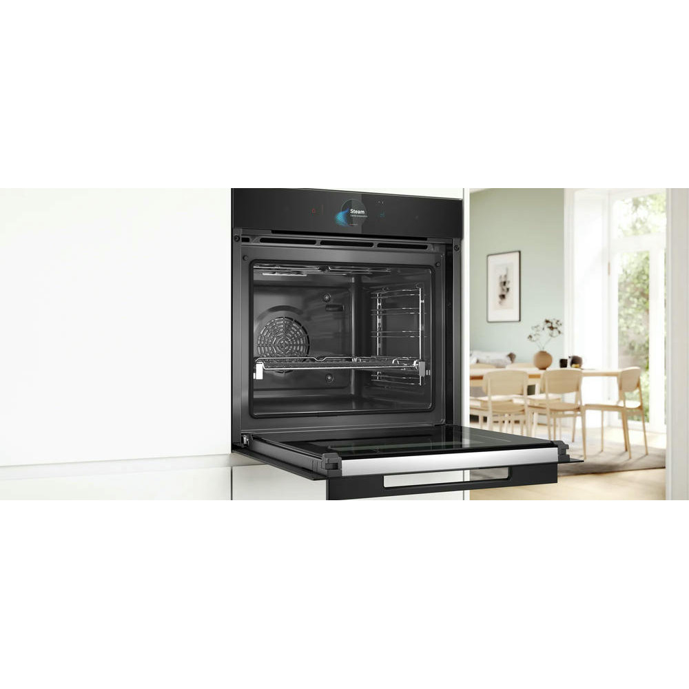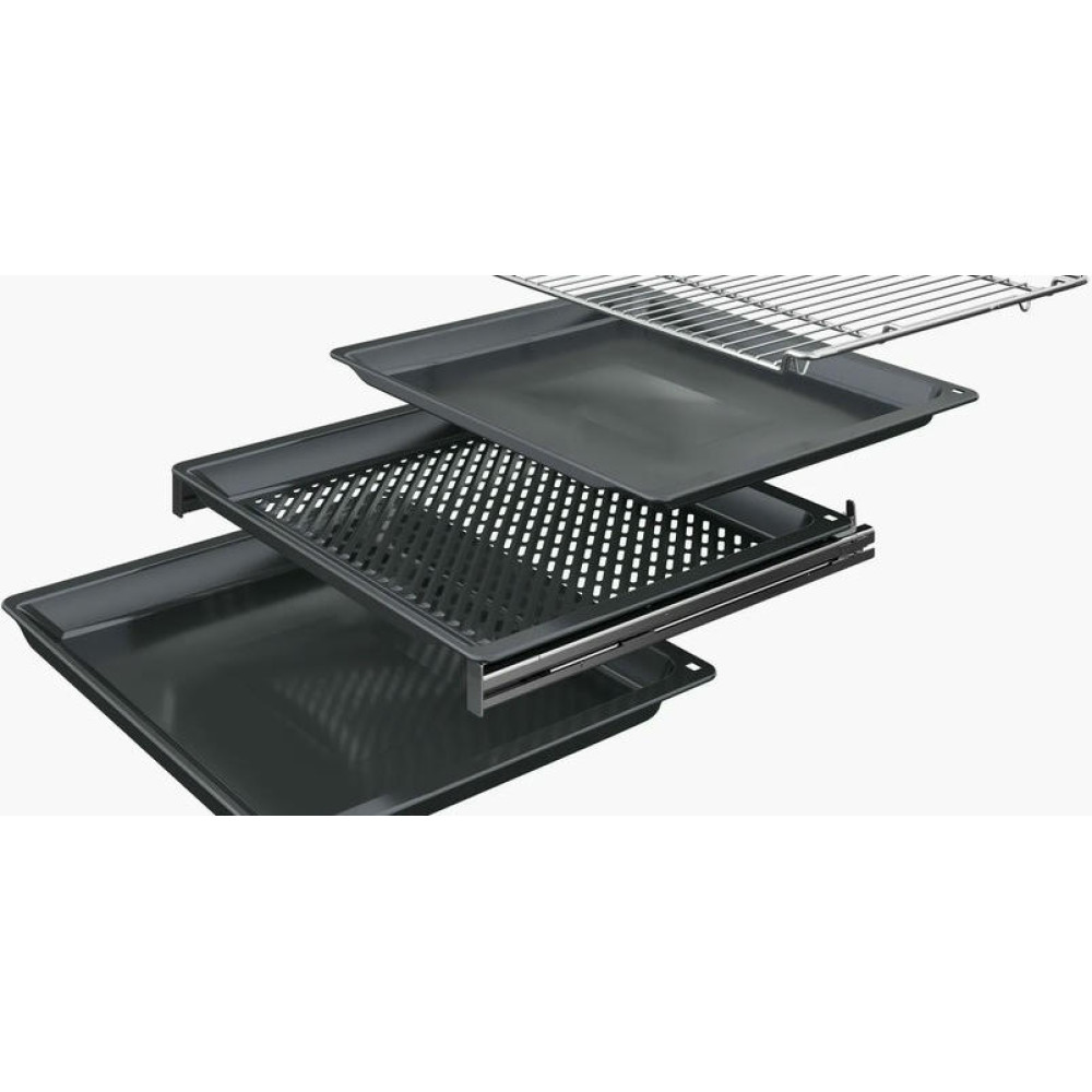 Духовой шкаф Bosch HRG978NB1 оснащен системой Home connect, теперь вы можете управлять устройством с помощью голосового помощника. Имеются телескопические направляющие на 1 уровне, они нужны для безопасного извлечения противня. 4D горячий воздух одновременно распределяет тепло на всех уровнях приготовления.