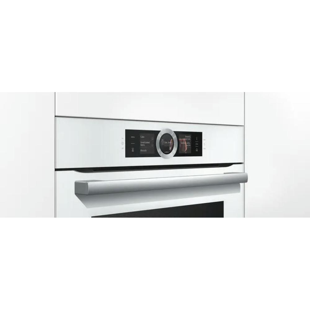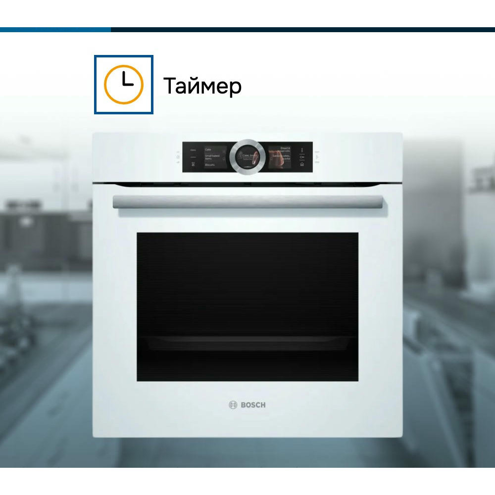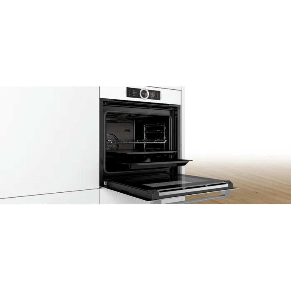 Электрический духовой шкаф Bosch HSG 636BW1 из серии Serie | 8 — это современная бытовая техника, сочетающая в себе стиль, функциональность и высокую производительность. Элегантный дизайн в белом цвете с серебристой фурнитурой идеально впишется в любой интерьер кухни. Внешний вид шкафа подчеркивает его высокотехнологичный характер: сенсорные переключатели Control Ring и 2.5-дюймовый цветной TFT-дисплей с сенсорными кнопками делают управление прибором простым и удобным. Многофункциональные часы Easy Clock и таймер помогут контролировать процесс приготовления блюд. Этот духовой шкаф отличается вместительностью и универсальностью. Внутренний объем составляет 71 литр, что позволяет готовить большое количество блюд одновременно. Прибор оснащен 16 режимами нагрева, включая 4D-горячий воздух, верхний/нижний жар, большой и малый гриль, режим для пиццы и даже бережное тушение. Духовой шкаф также оснащен функцией 100% пара, что позволяет приготовить блюда на пару, сохраняя все полезные вещества. Особенностью является меню Assist, которое автоматически выбирает оптимальные параметры приготовления для различных блюд. Внутреннее освещение LED обеспечивает отличную видимость внутри шкафа. Система очистки EcoClean облегчает уход за прибором, а амортизатор дверцы SoftMove делает использование еще более комфортным.