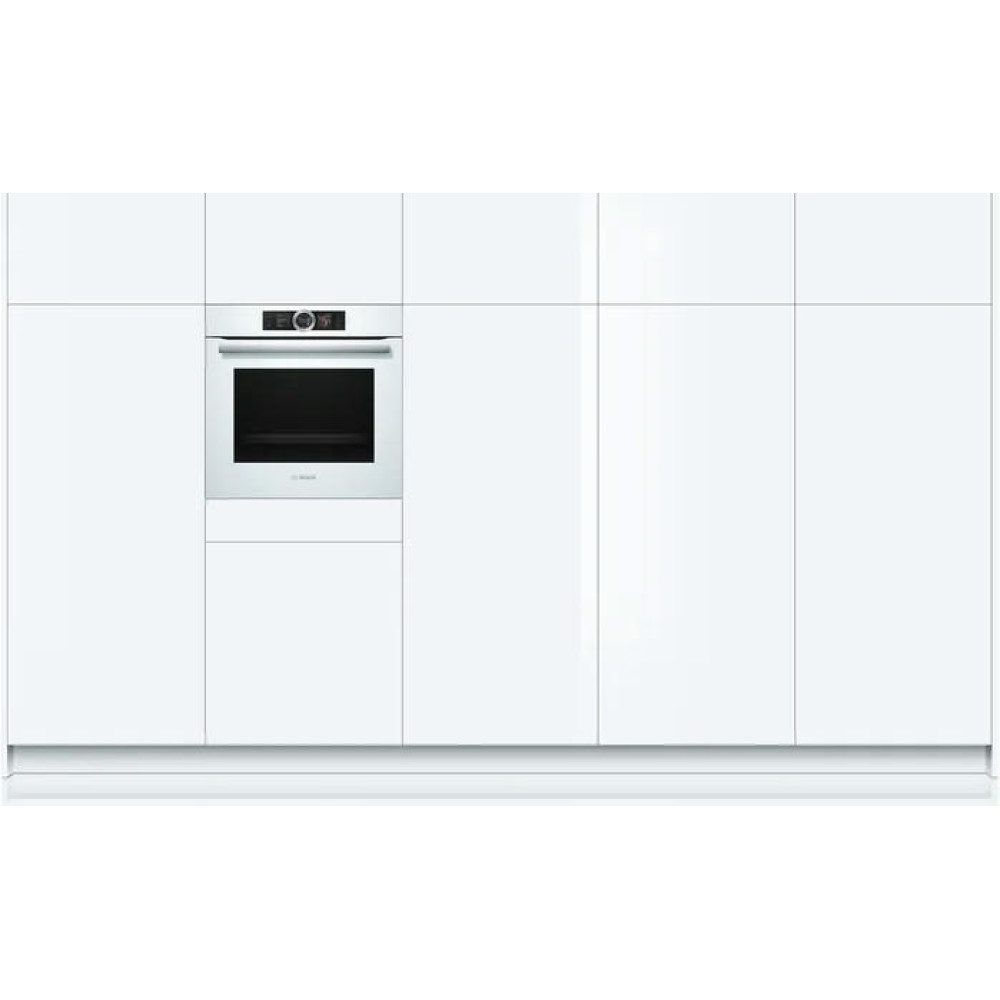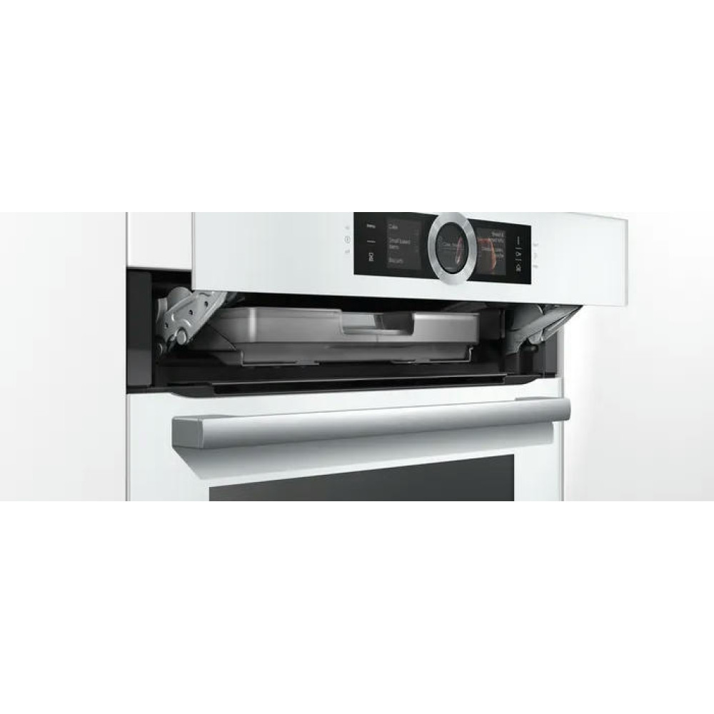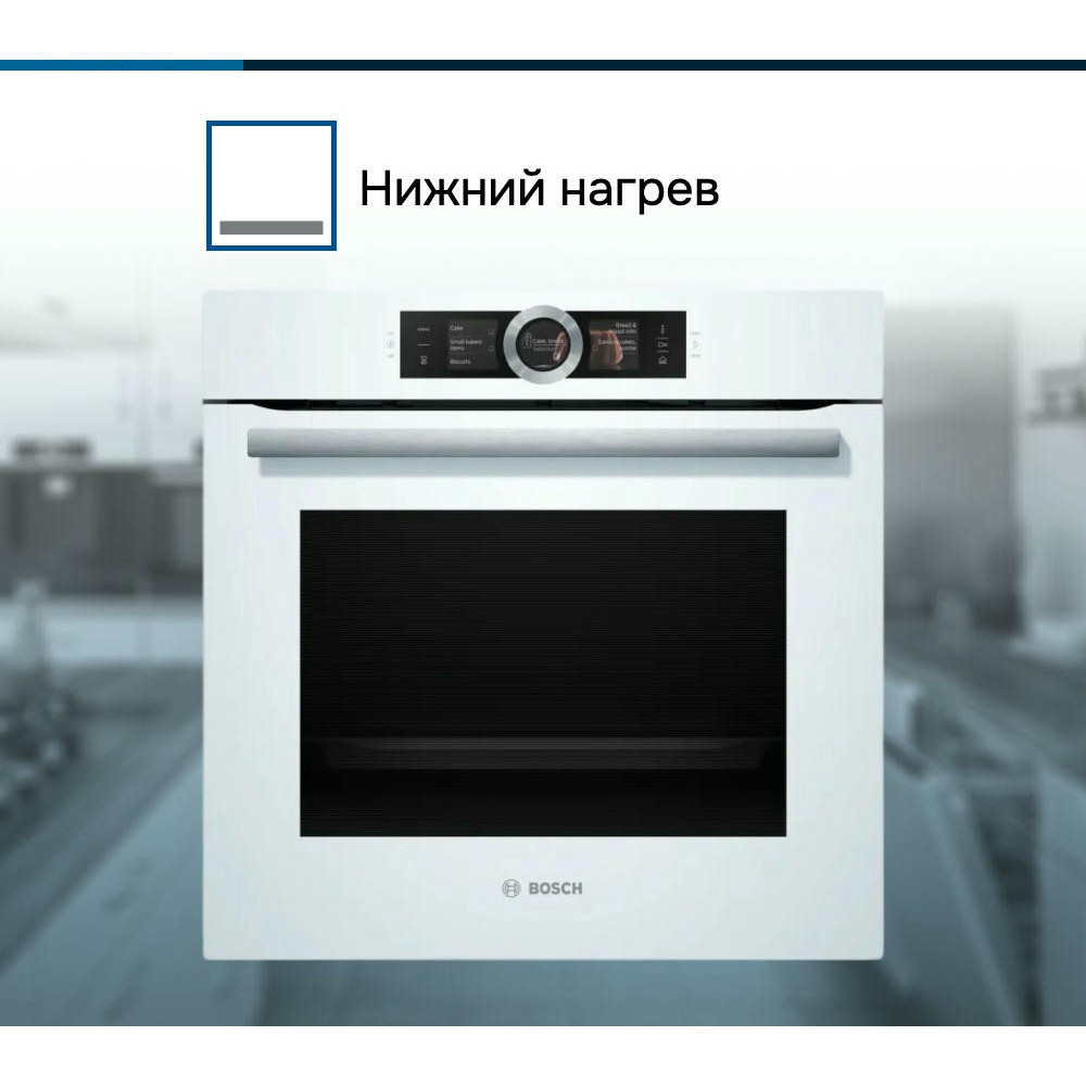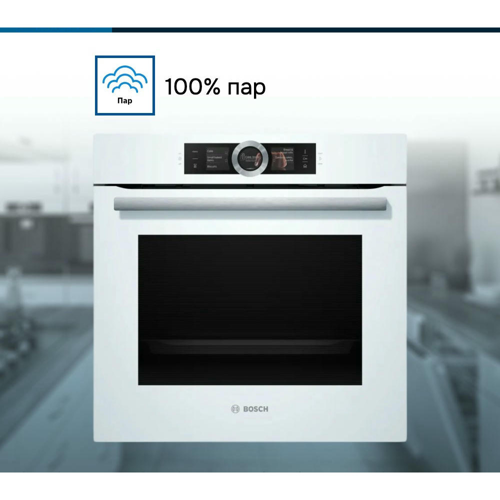 Электрический духовой шкаф Bosch HSG 636BW1 из серии Serie | 8 — это современная бытовая техника, сочетающая в себе стиль, функциональность и высокую производительность. Элегантный дизайн в белом цвете с серебристой фурнитурой идеально впишется в любой интерьер кухни. Внешний вид шкафа подчеркивает его высокотехнологичный характер: сенсорные переключатели Control Ring и 2.5-дюймовый цветной TFT-дисплей с сенсорными кнопками делают управление прибором простым и удобным. Многофункциональные часы Easy Clock и таймер помогут контролировать процесс приготовления блюд. Этот духовой шкаф отличается вместительностью и универсальностью. Внутренний объем составляет 71 литр, что позволяет готовить большое количество блюд одновременно. Прибор оснащен 16 режимами нагрева, включая 4D-горячий воздух, верхний/нижний жар, большой и малый гриль, режим для пиццы и даже бережное тушение. Духовой шкаф также оснащен функцией 100% пара, что позволяет приготовить блюда на пару, сохраняя все полезные вещества. Особенностью является меню Assist, которое автоматически выбирает оптимальные параметры приготовления для различных блюд. Внутреннее освещение LED обеспечивает отличную видимость внутри шкафа. Система очистки EcoClean облегчает уход за прибором, а амортизатор дверцы SoftMove делает использование еще более комфортным.