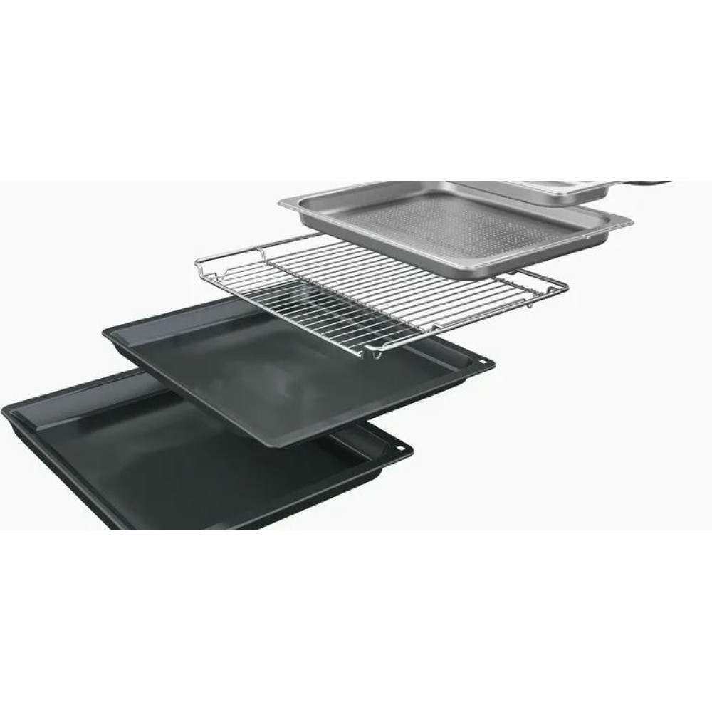 Управление духовым шкафом осуществляется электронно, с помощью сенсорных кнопок. На 3.7-дюймовом цветном TFT-дисплее отображается всю необходимую информацию о режимах работы и настройках прибора. Встроенные электронные часы и таймер помогут контролировать время приготовления блюд, а функция Home Connect позволяет управлять шкафом дистанционно через смартфон или планшет. Духовой шкаф Bosch HSG7361W1 оснащен 13 режимами нагрева, позволяющими выбрать оптимальные условия для приготовления различных блюд. Режим 4D-горячий воздух обеспечивает равномерное распределение температуры по всему объему шкафа, а функция Gentle сохраняет нежность и сочность приготавливаемых продуктов. Верхний и нижний жар, большой и малый гриль, гриль с конвекцией и режим для пиццы позволяют приготовить любое блюдо в соответствии с рецептом.