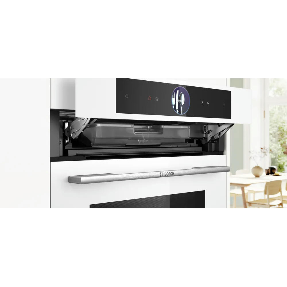 Электрический духовой шкаф Bosch HSG7361W1 из серии Serie | 8 представляет собой современное и функциональное решение для кухни. Благодаря компактным размерам (59.5 см в высоту, 59.4 см в ширину и 54.8 см в глубину) и возможности встраивания в нишу размером 58.5-59.5 х 56-56.8 х 55 см, прибор не занимает много места на кухне.