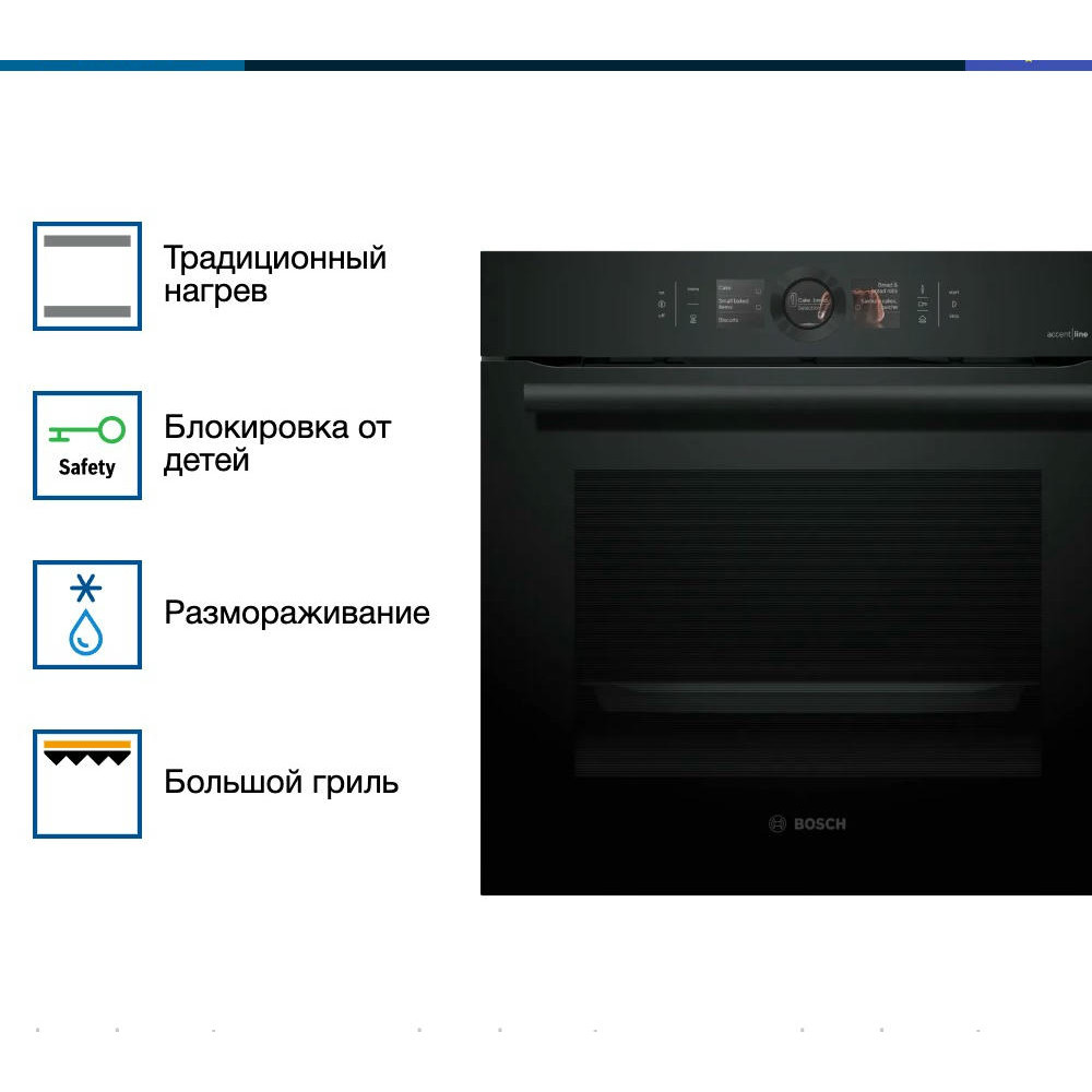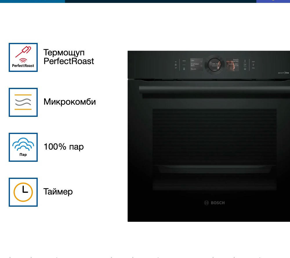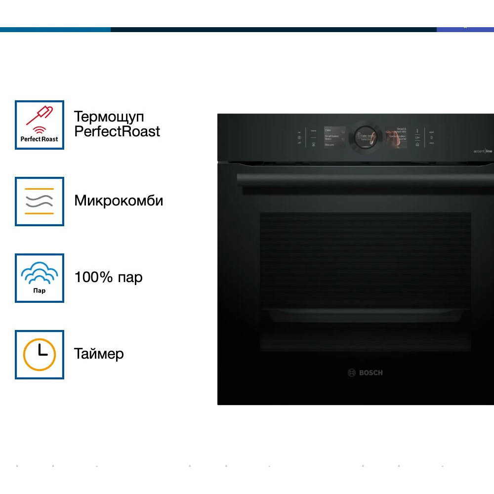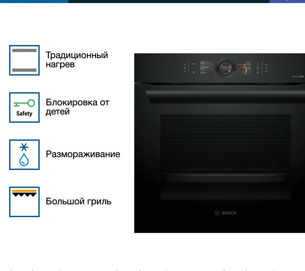Дисплей 7.5_ цветной TFT с сенсорными кнопками обеспечивает четкую и яркую картинку, позволяя легко выбирать нужные настройки. Духовой шкаф оснащен 16 режимами нагрева, включая 4D-горячий воздух, горячий воздух Gentle и ECO, верхний/нижний жар и другие. Такой выбор гарантирует идеальный результат приготовления любого блюда. Благодаря функции автоматического быстрого разогрева, духовка готова к работе в кратчайшие сроки. Для тех, кто предпочитает здоровое питание, предусмотрен режим приготовления на пару. В комплекте идут специальные емкости для этого режима. Также стоит отметить наличие многоточечного термощупа PerfectRoast и сенсора для выпечки PerfectBake, которые обеспечивают точное соблюдение температурного режима и гарантируют отличный результат.