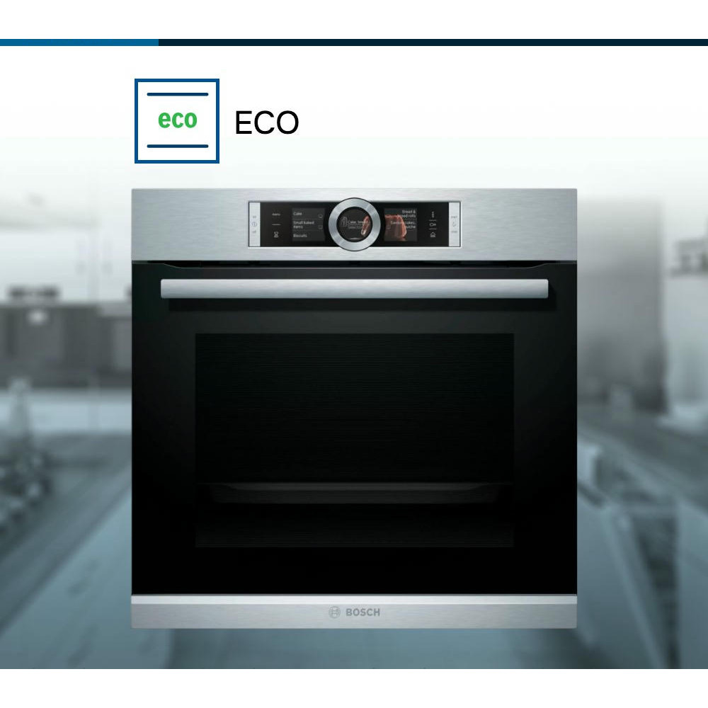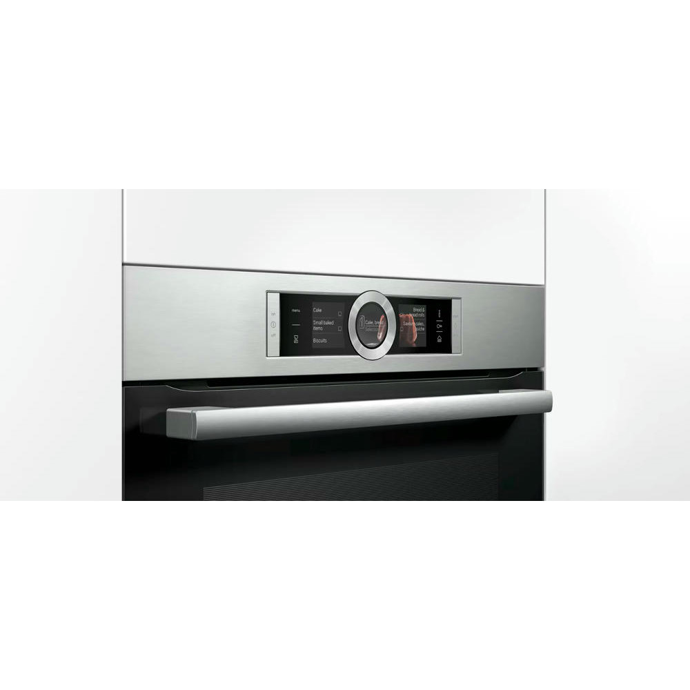 Духовой шкаф-пароварка Bosch HSG636ES1 — это электрическая независимая модель. Ее внутренний объем составляет 71 литр, благодаря чему есть возможность запекать большие блюда. Она оформлена в цвете «нержавеющая сталь», благодаря чему отлично впишется в любой современный кухонный интерьер — например, в стиле хай-тек. Управление осуществляется посредством использования сенсорных кнопок и Control Ring. Благодаря многофункциональным часам Easy Clock можно с легкостью отслеживать время до окончания работы одной из программ.