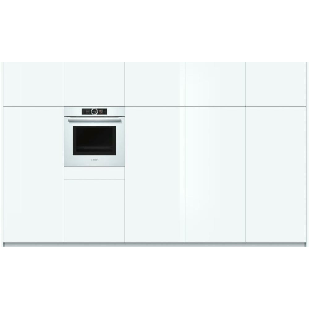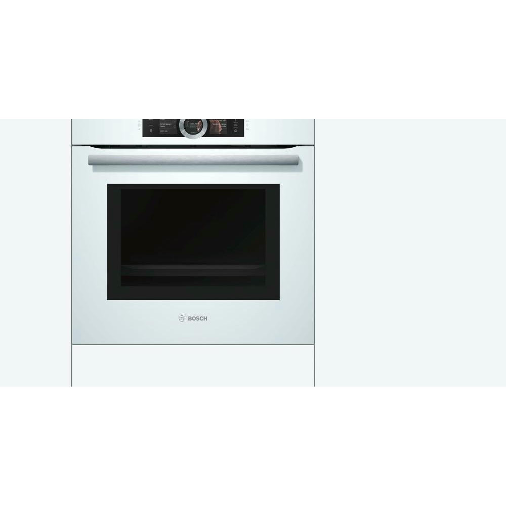 Духовой шкаф Bosch HNG6764W6 оснащен объемной камерой на 67 литров, в которой предусмотрено пять уровней для размещения противней. 14 режимов нагрева, в том числе гриль, конвекция, сушка, поддержание температуры и подогрев посуды сделают процесс готовки более простым и комфортным. Термощуп PerfectRoast позволяет получить идеальную выпечку. Наружное стекло нагревается в процессе работы не более чем до 30_С.