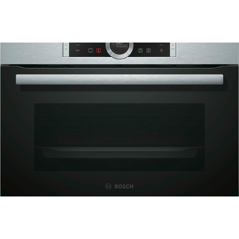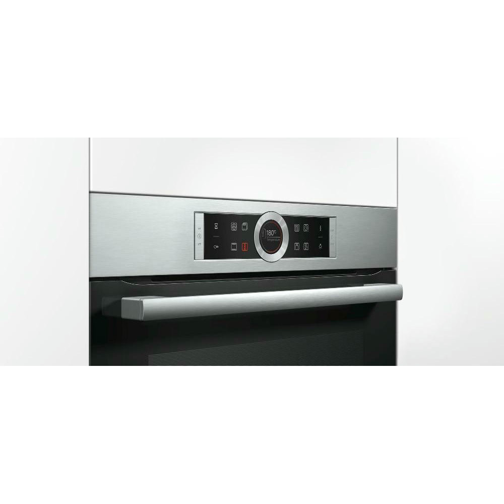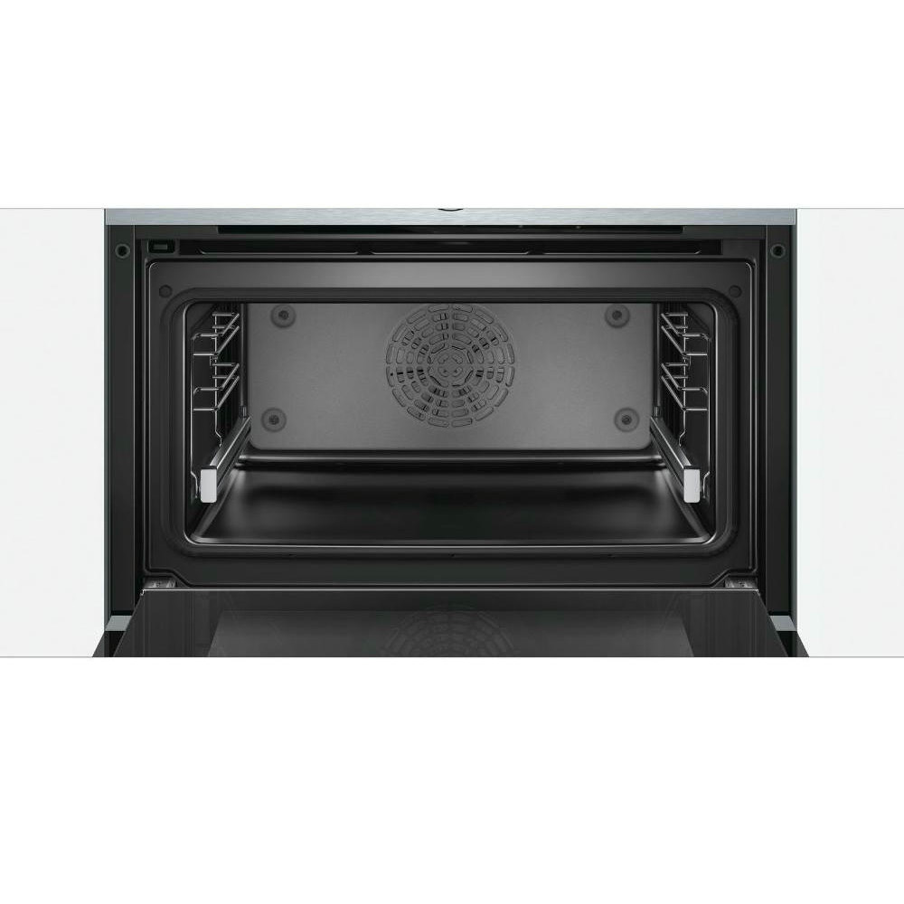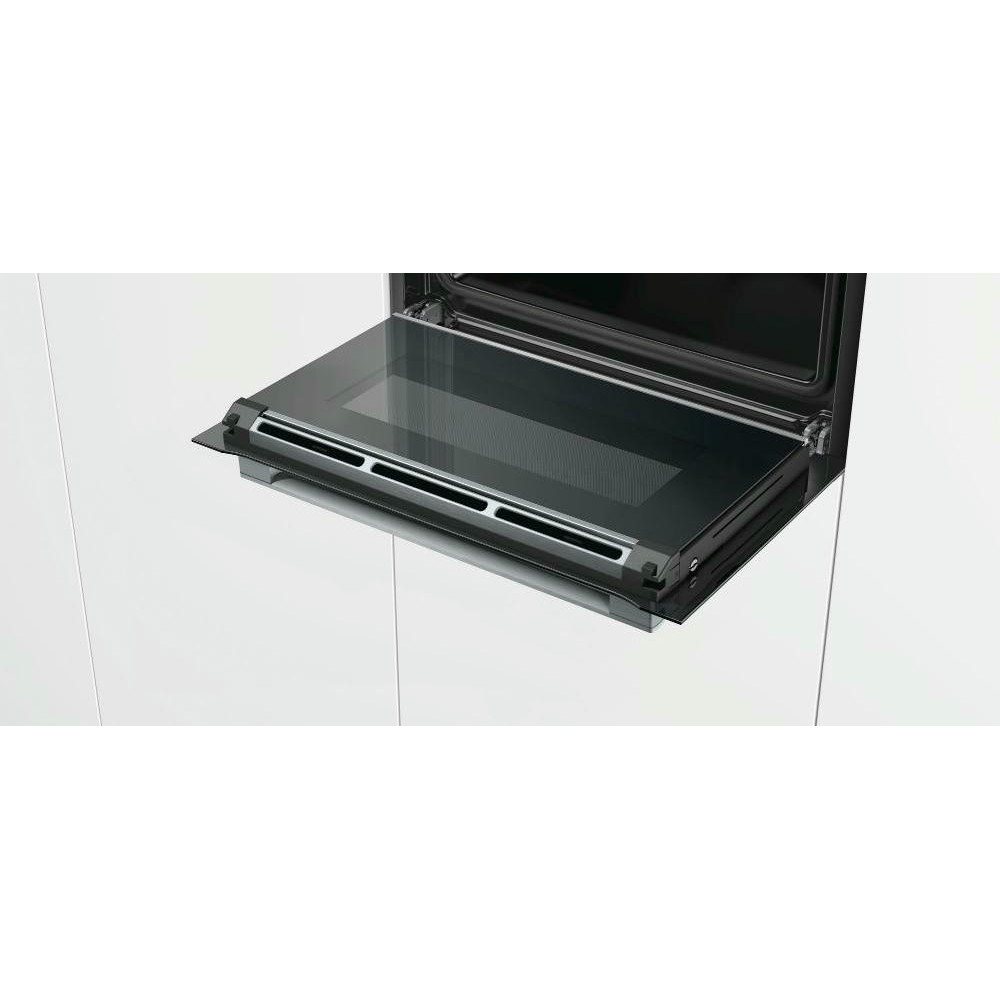 Духовой Bosch CBG633NS1 оснащен тремя уровнями установки противней, в том числе на одном — телескопические направляющие с полным выдвижением и Stop-функцией. Дверца имеет тройное остекление и оснащена амортизаторами SoftOpen и SoftClose, которые обеспечивают ей плавное и бесшумное закрытие и открытие. Наружное стекло нагревается не более чем до 40_С, что минимизирует риск ожогов.