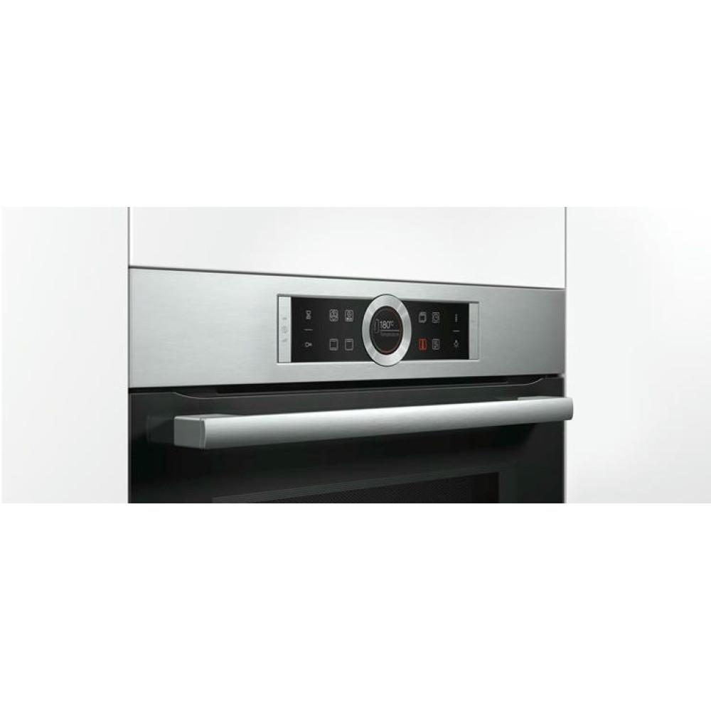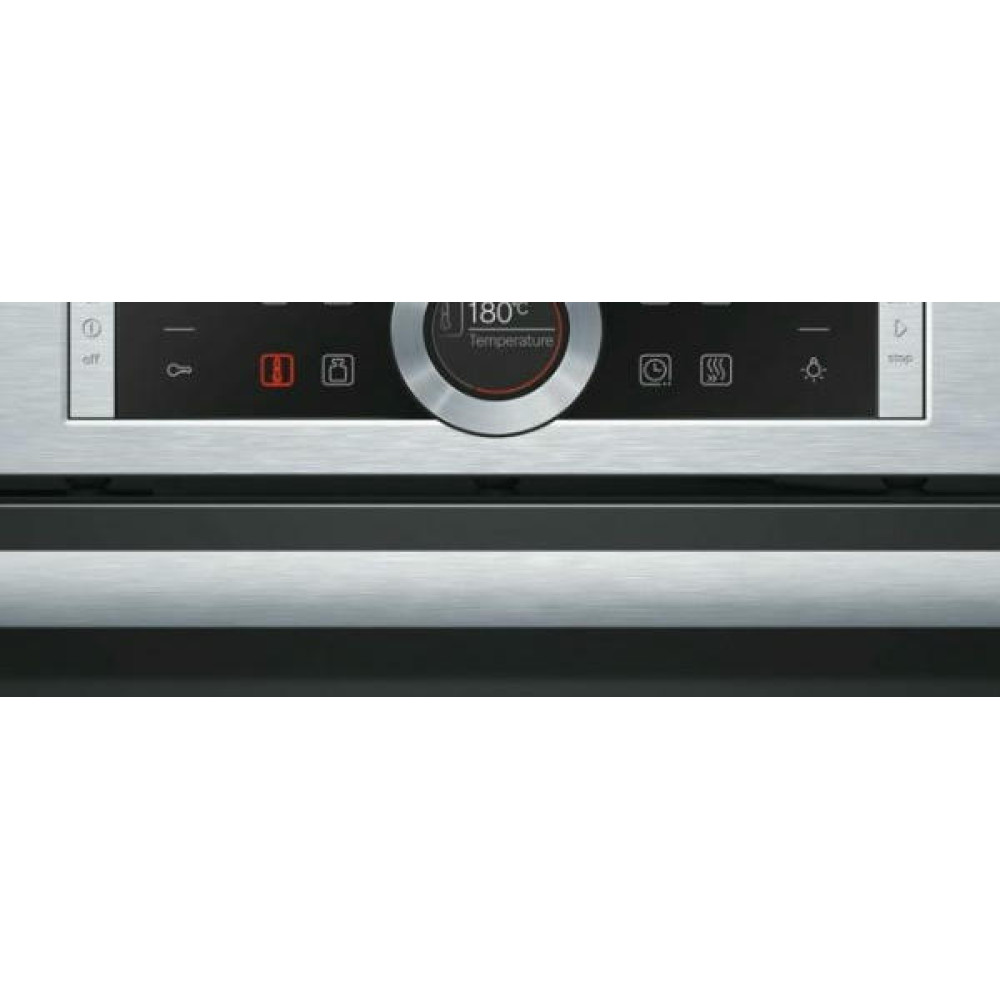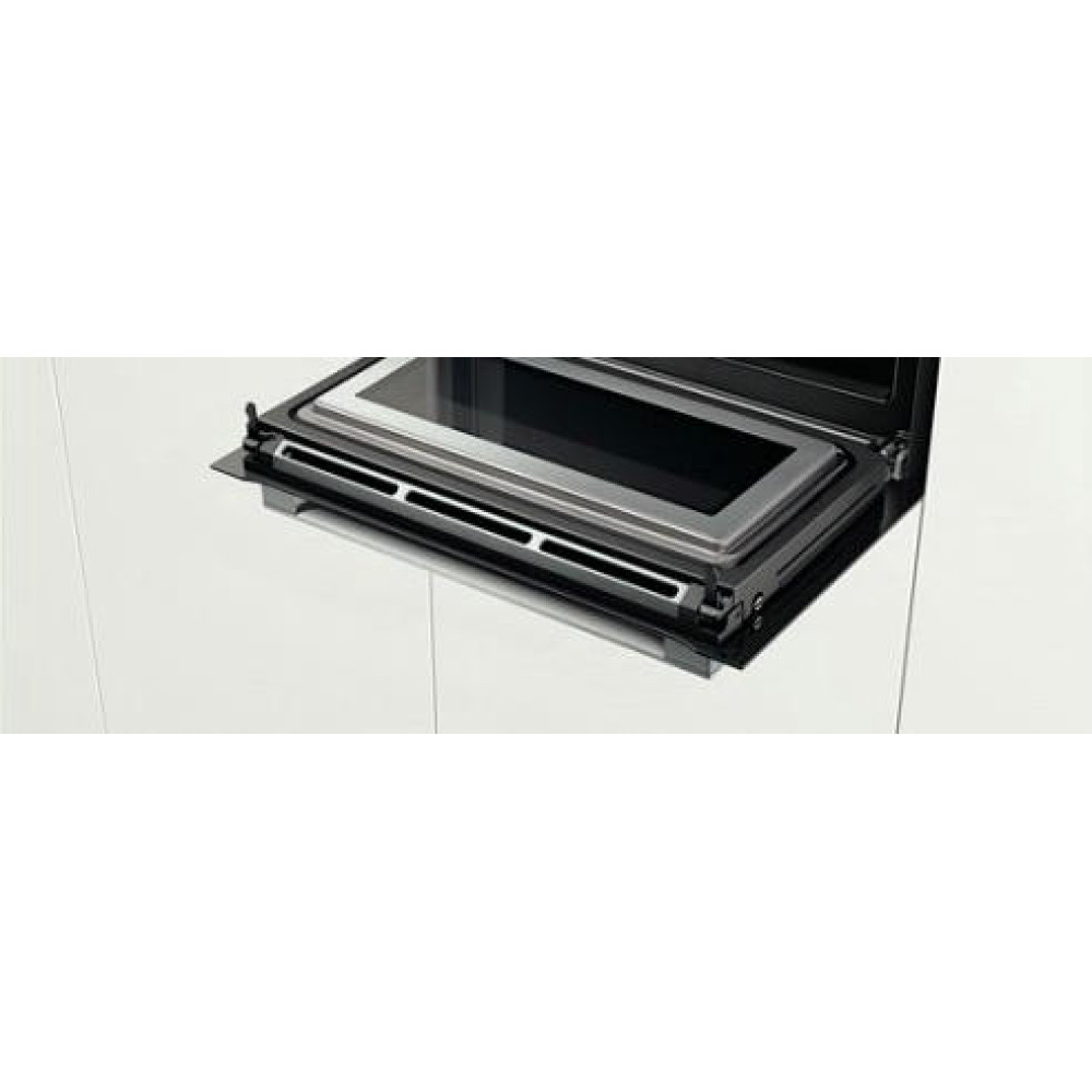 Внешнее оформление — комбинированное: нержавеющая сталь, пластик, черное стекло. Модель оснащена TFT-дисплеем с сенсорными кнопками и поворотным кольцом для выбора режимов Control Ring. Освещение внутренней камеры обеспечивают LED-лампы, более долгосрочные, чем галогенные, и обладающие более мягким светом. Электронные часы и звуковой таймер оповестят об окончании приготовления. Доступна отсрочка старта до 24 часов.