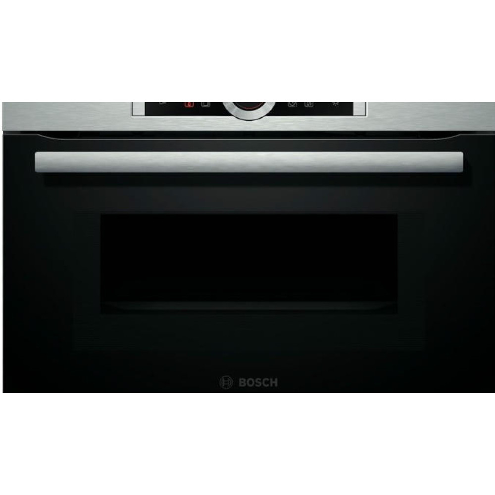 В комплектацию Бош CMG633BS1 входят решетка и универсальный противень). Чтобы приготовить мясо большим куском на решетке, противень нужно оставить на уровень ниже.