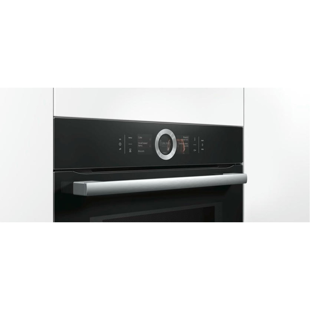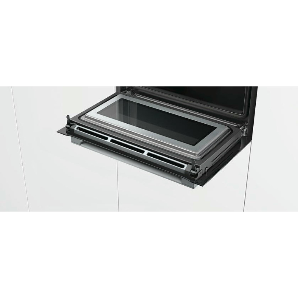 Духовой шкаф CMG636BB1 оснащен цветным дисплеем. Режим СВЧ можно использовать в комбинации с традиционными видами нагрева. Микроволны используют для быстрого приготовления, разогрева или размораживания продуктов. В режиме «Микрокомби» можно выбрать одно из трех значений мощности. Блокировка управления предотвращает случайное включение и изменение настроек во время работы прибора.