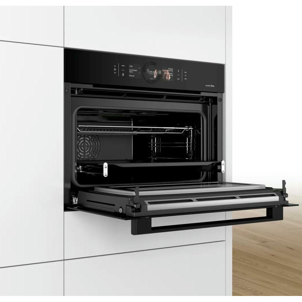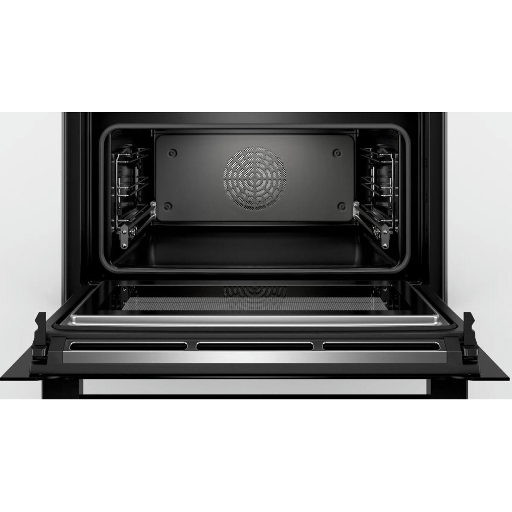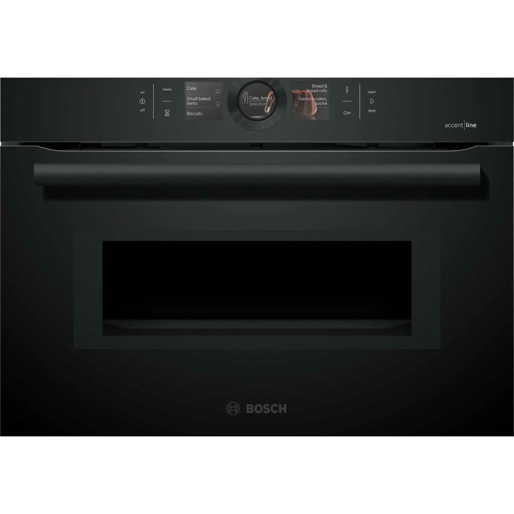 Встраиваемый компактный электрический духовой шкаф Bosch CMG836NC1 сочетает в себе функции духовки и микроволновой печи. При помощи сенсорной панели, переключателя ControlRing и TFT-дисплея можно выбрать один из 12 режимов нагрева. 4D горячий воздух обеспечивает распределение горячего воздуха на 4 уровнях. Тепло направляется благодаря воздуховыпускным отверстиям, поэтому результат идеален в любом случае. EcoClean Direct упрощает очистку прибора. Специальное покрытие из тончайших керамических шариков на задней стенке поглощает брызги жира во время выпекания или жарки — в течение всего срока службы устройства.