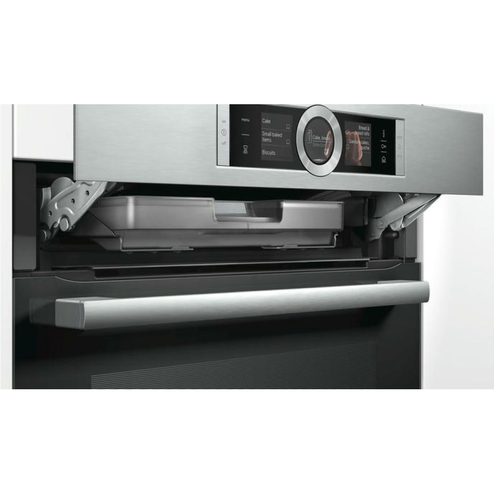 Компактный духовой шкаф Bosch CSG656BS2 из 8 серии управляется при помощи сенсорного дисплея и переключателя Control Ring. Удобное анимационное меню Assist обеспечивает быстрый доступ к режимам и функциям, а также автоматически подбирает оптимальную температуру и время приготовления для различных блюд.