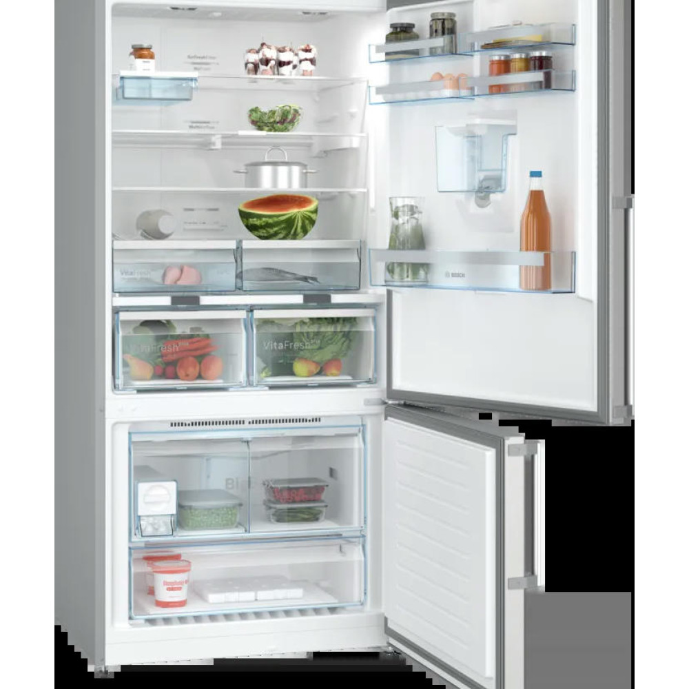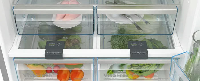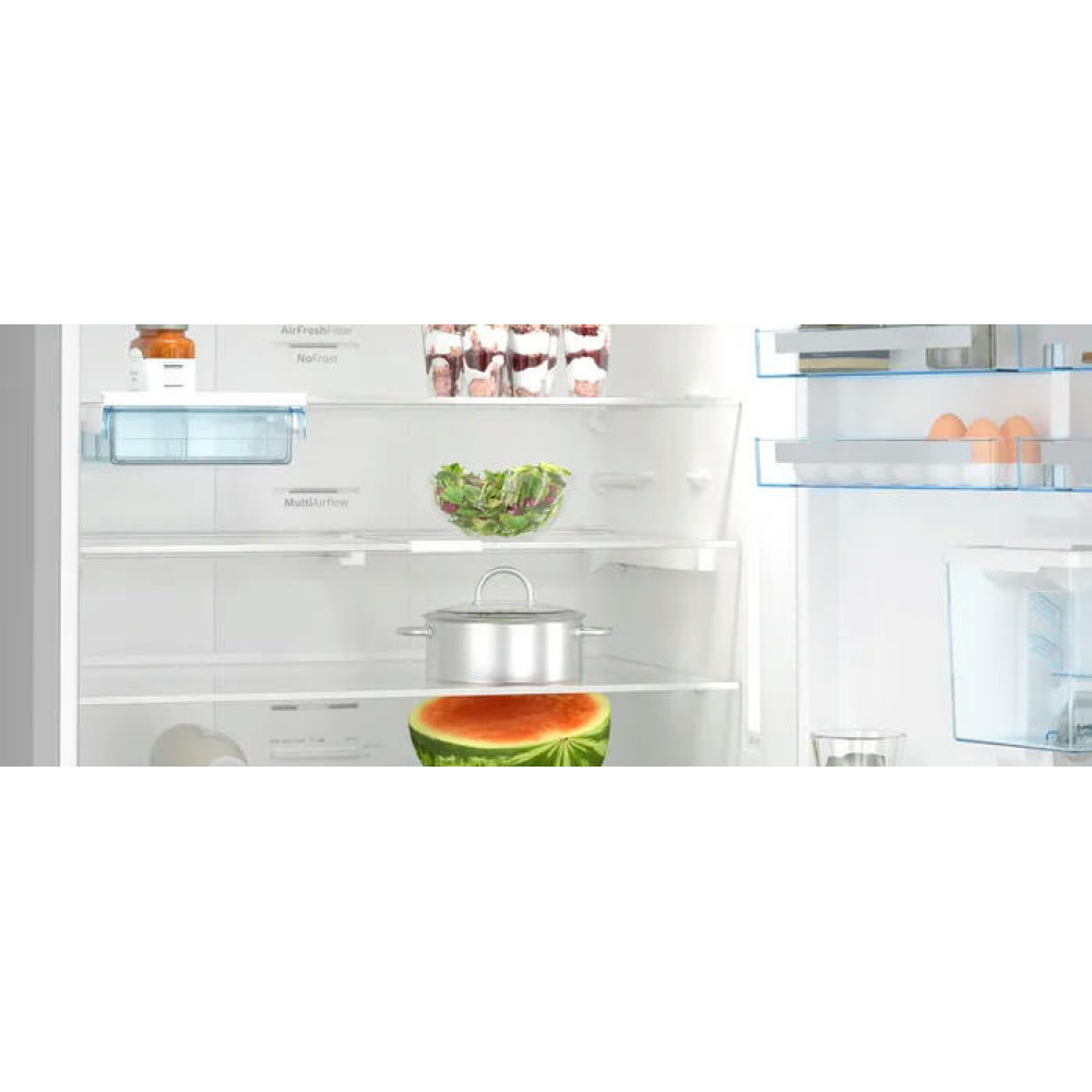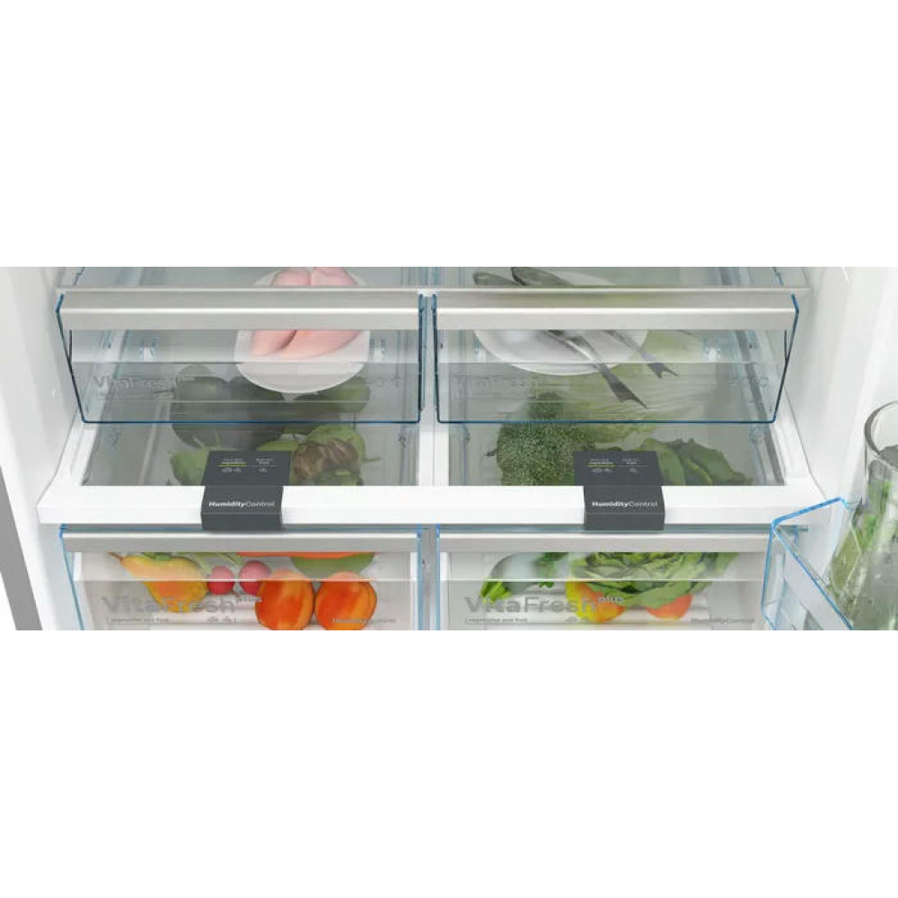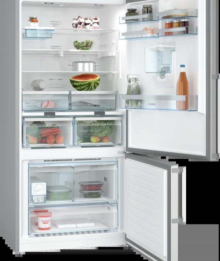 Двухкамерный холодильник Bosch KGD86AI31U — это уникальное сочетание современного дизайна и продуманной функциональности. Этот модельный ряд выполнен в строгом стиле из нержавеющей стали, что придает ему особый шик и позволяет вписаться в любой интерьер. Благодаря специальной обработке, на поверхности не остаются отпечатки пальцев, что облегчает уход за холодильником и поддержание его в идеальном состоянии. Внутреннее пространство холодильника продумано до мелочей. Общий полезный объем составляет 682 литра, что позволяет вместить большое количество продуктов. Система охлаждения No Frost и автоматическое размораживание обеспечивают оптимальные условия для сохранения свежести продуктов. Электронное управление с сенсорными элементами и дисплеем делает использование холодильника максимально удобным и понятным. Система MultiAirflow обеспечивает равномерное распределение холода по всему объему, а функция суперохлаждения позволяет быстро охладить большое количество продуктов. В холодильной камере есть 3 полки, 2 из которых регулируемые, и одна фиксированная. Все полки изготовлены из высокопрочного стекла и обеспечивают надежное хранение продуктов. Кроме того, есть специальная полка для бутылок и 5 полок на дверце. Особенностью данной модели является наличие зоны свежести VitaFresh plus, которая обеспечивает оптимальные условия для хранения различных видов продуктов. В морозильной камере есть система размораживания и охлаждения, а также функция суперзамораживания SuperFreezing. Класс энергопотребления E (старое обозначение A++) говорит о высокой энергоэффективности устройства. Наличие защиты от детей, индикации открытой двери и сигнализации об ошибке обеспечивают безопасность использования.