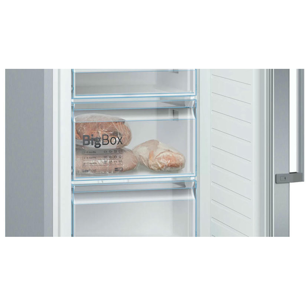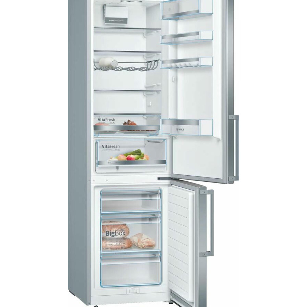 Двухкамерный холодильник Bosch KGE398IBP оснащен системой VitaFresh она сохраняет свежесть продуктов при 0°C температуре. В морозильной камере имеется ящик Big Box в него поместится даже большой торт. Суперзаморозка Super Freeze помогает быстро заморозить новые продукты и регулирует температуры для лучшего сохранения холода.