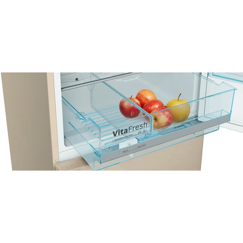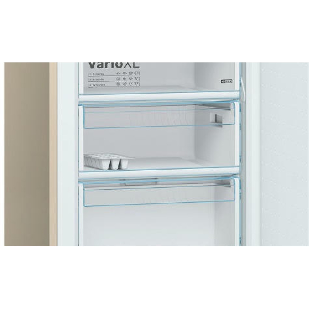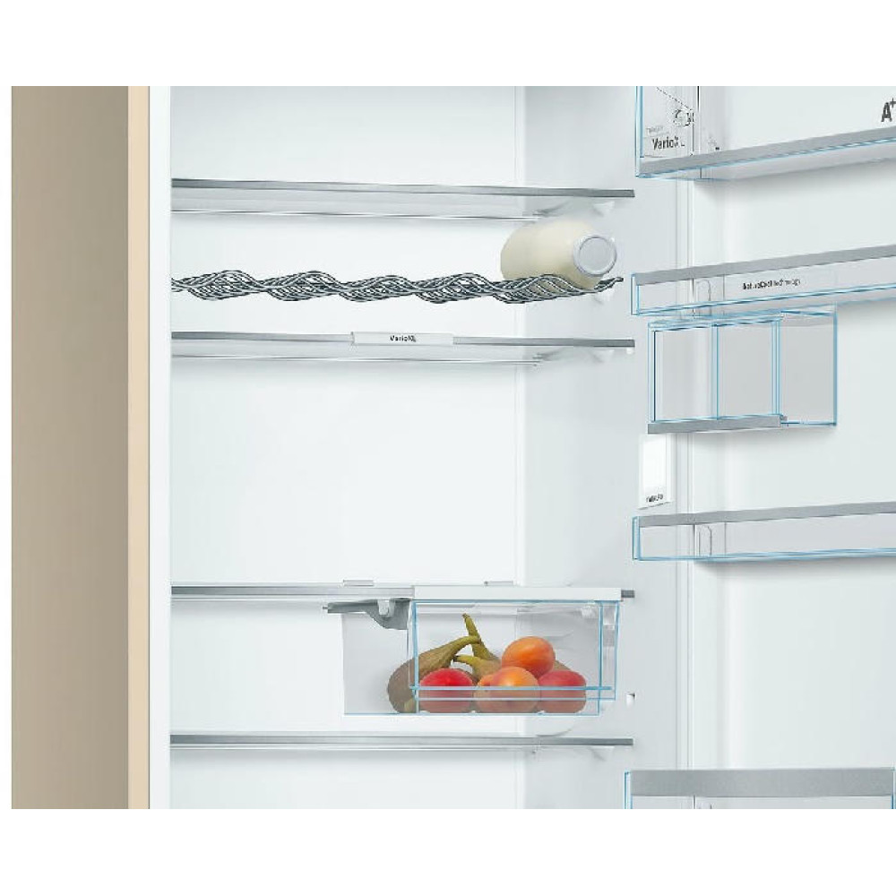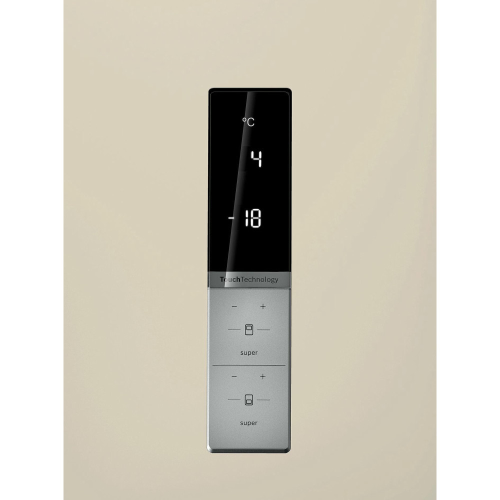 Холодильное отделение укомплектовано 5 полками из стекла, 4 из которых регулируются по высоте, хромированным подвесом для бутылок, зоной свежести и малым ящиком. Управление прибором осуществляется при помощи сенсорной системы TouchControl. Климатический класс модели — SN-T.