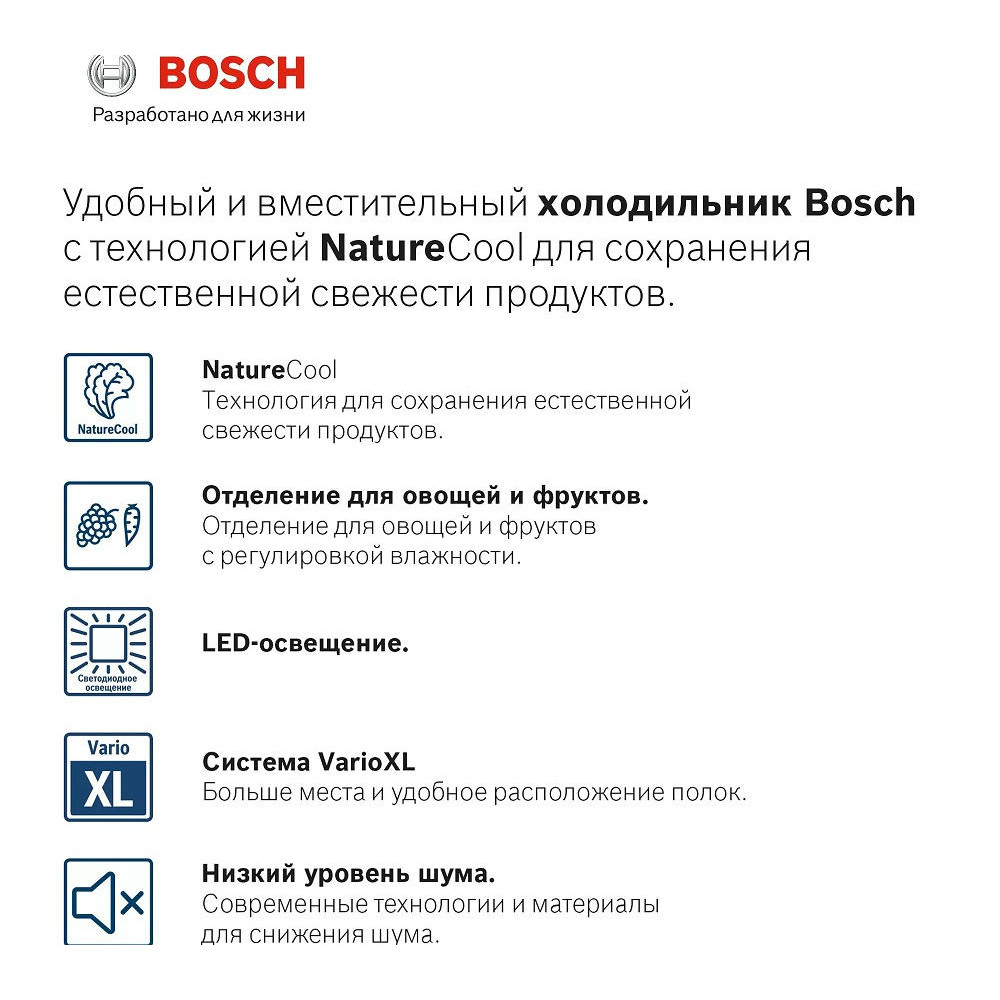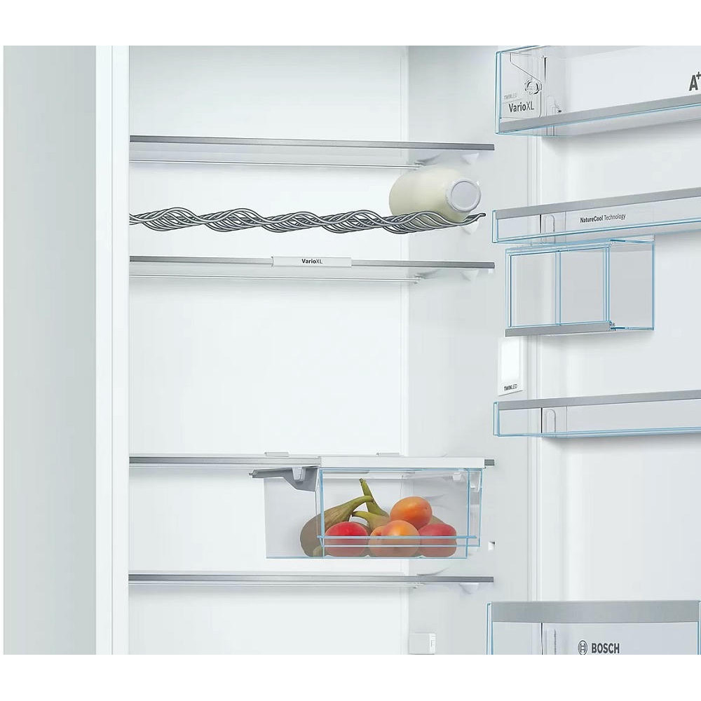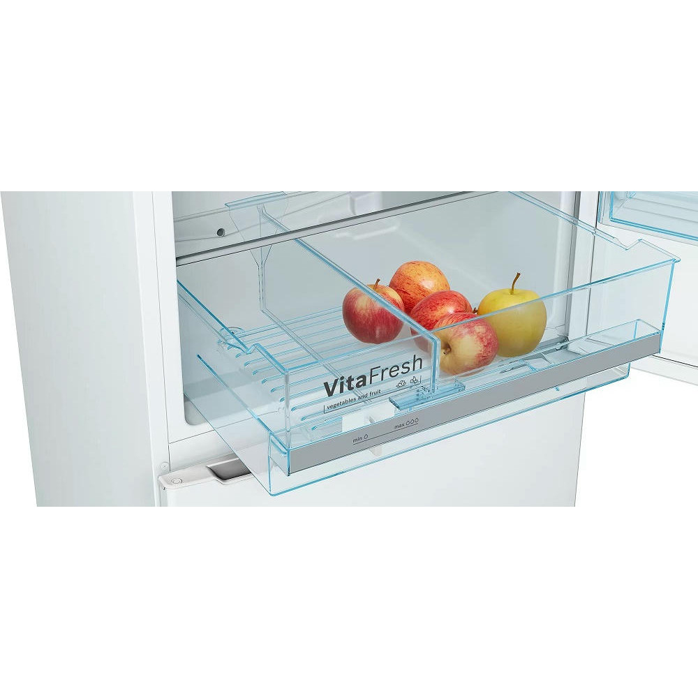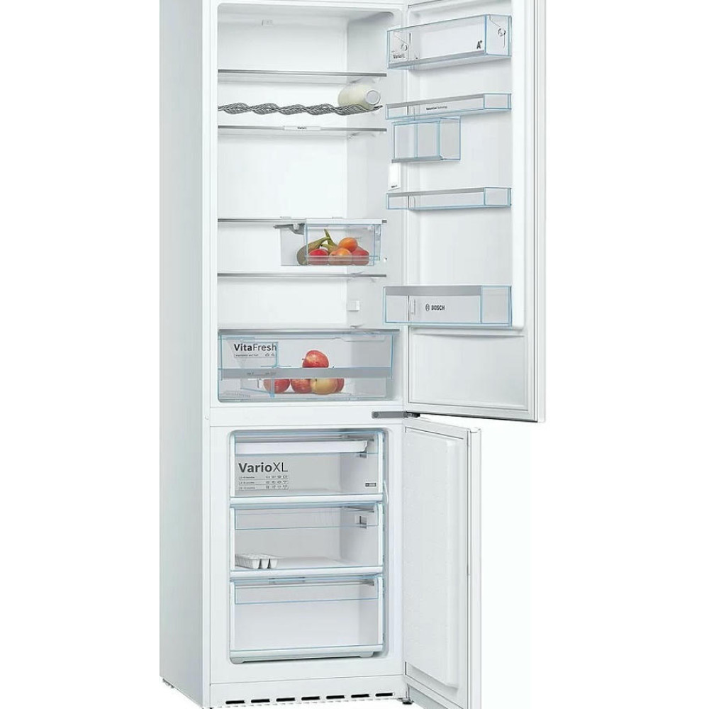 Двухкамерный холодильник Bosch KGE39AW33R выполнен в белом цвете и отлично впишется в интерьер классической кухни. Прозрачный ящик MultiBox с волнистым дном идеально подходит для хранения фруктов и овощей. Светодиодная подсветка привносит в холодильник совершенно новую концепцию света, гарантируя равномерное освещение всего пространства без бликов.