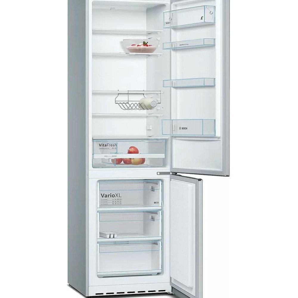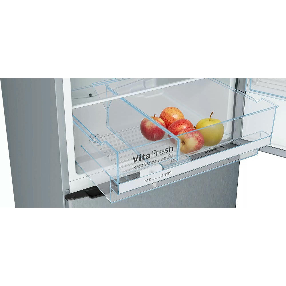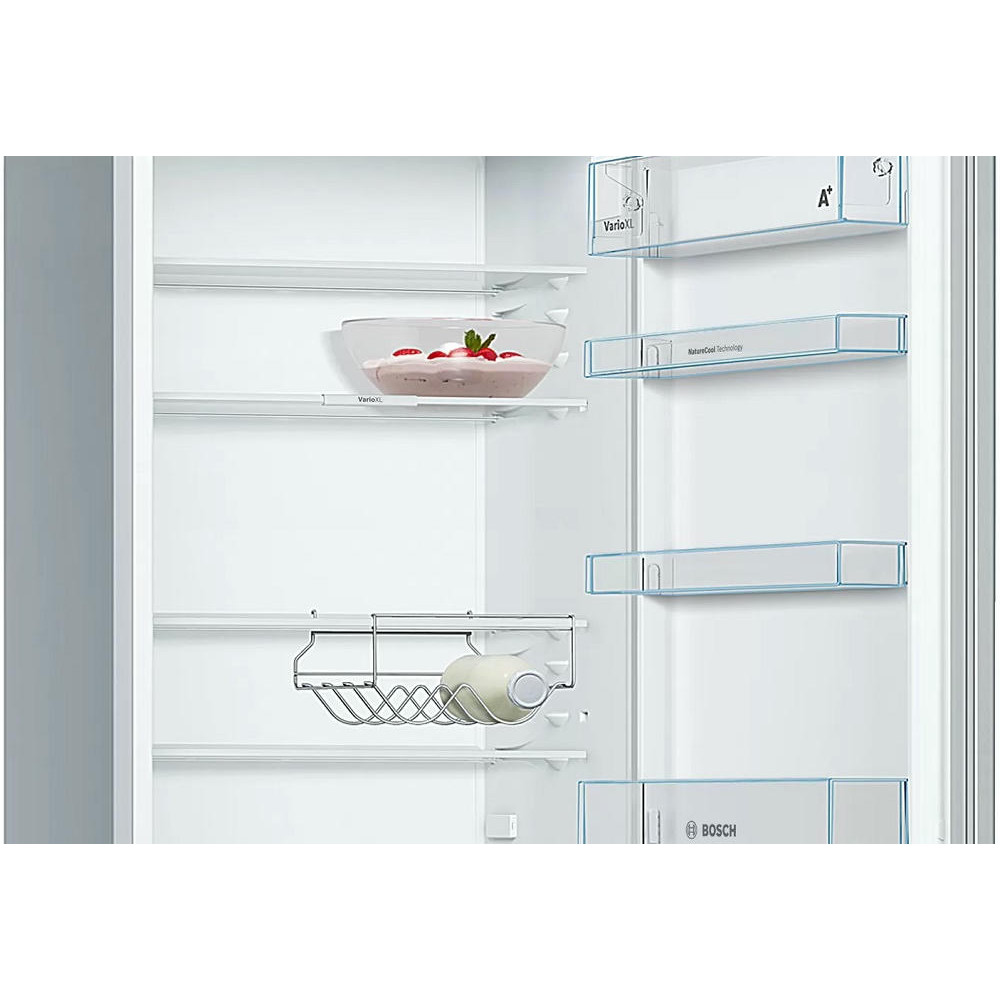 Двухкамерный холодильник Bosch KGE39XL21R относится к типу отдельностоящих. Он отличается высокими характеристиками вместимости — 351 л. Данная модель относится к серии NatureCool. Она выделяется улучшенными параметрами для сохранения свежести, например, регуляцией влажности.