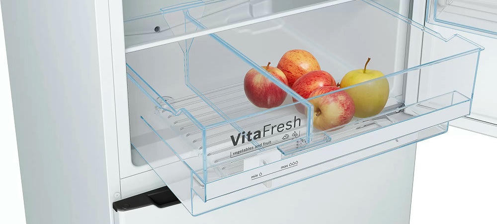 Отличительной особенностью является наличие технологии VitaFresh, которая способствует сохранению свежести продуктов в 3 раза больше, поддерживая оптимальную температуру и уровень влажности.