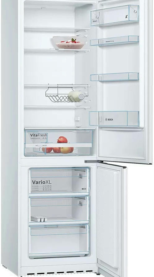 Двухкамерный холодильник Bosch KGE39XW21R из линейки Serie | 4 выполнен в классическом белом цвете. Общий полезный объем двух камер составляет 351 л. Модели присвоен климатический класс SN-T. Это считается наиболее универсальным показателем, позволяя работать прибору в температурном диапазоне от +10 до +43°C.