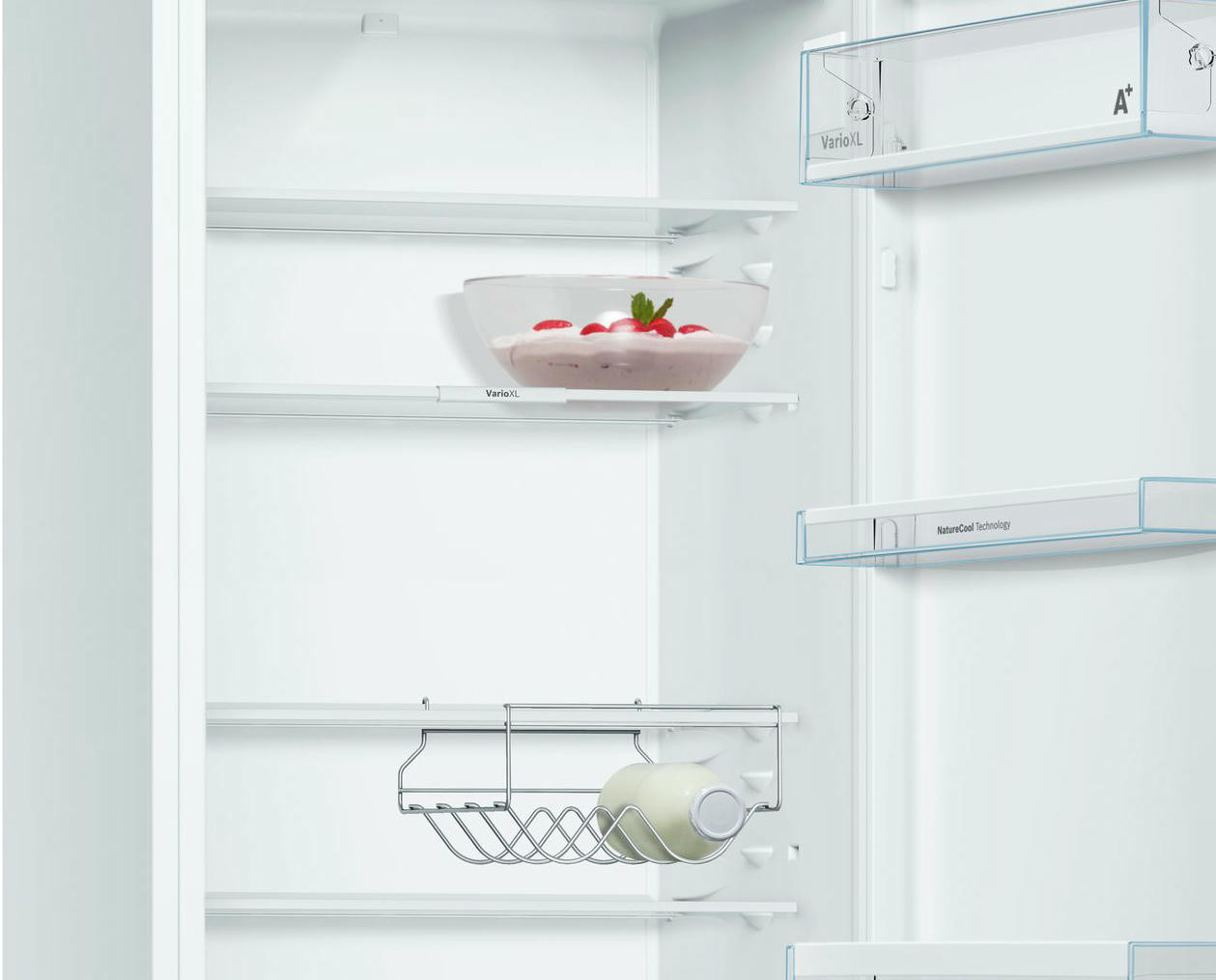 - удобная система хранения внутри каждой камеры — полки могут располагаться на удобной для вас высоте, большинство контейнеров рассчитано на стандартные упаковки, бутылки и банки;