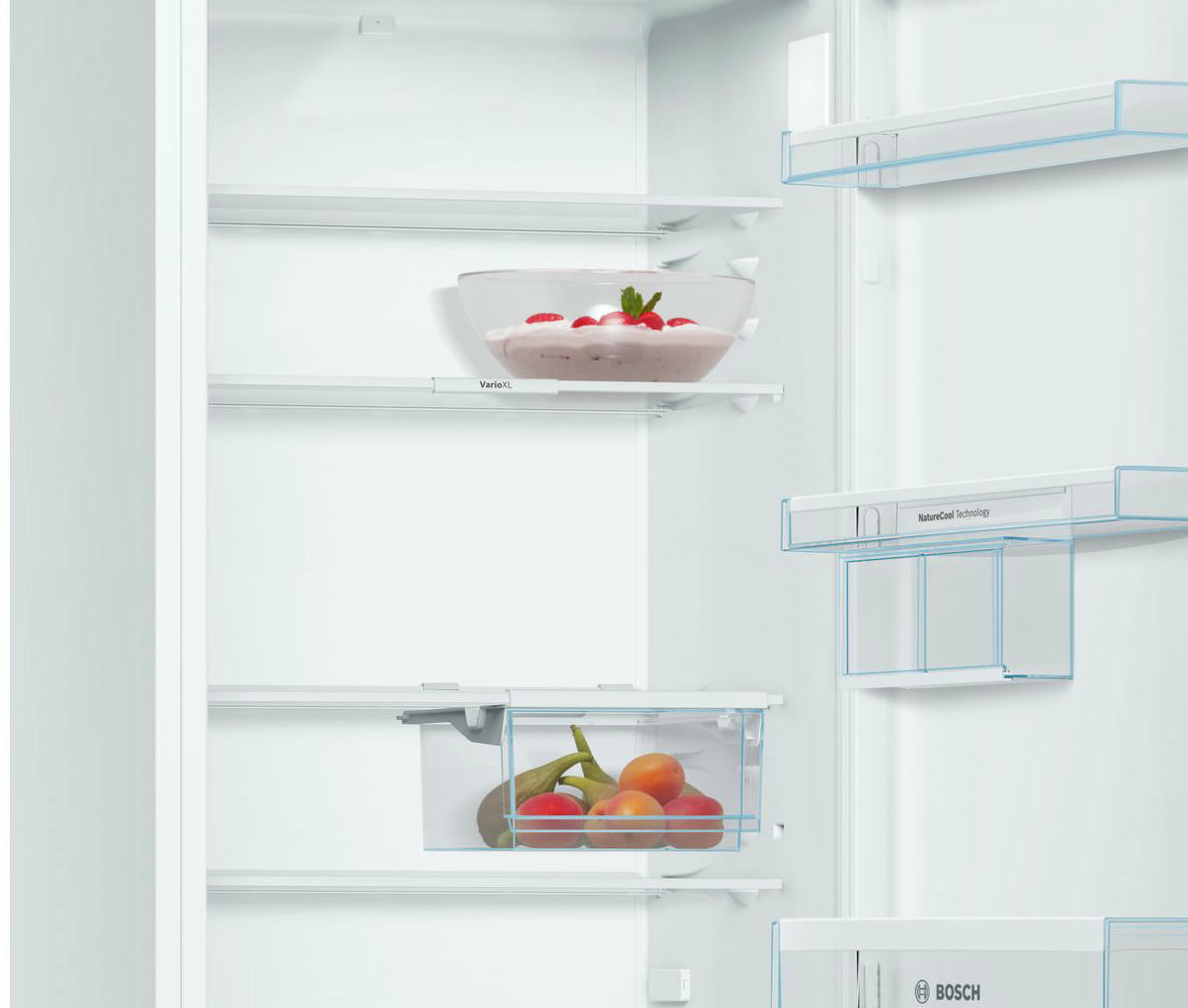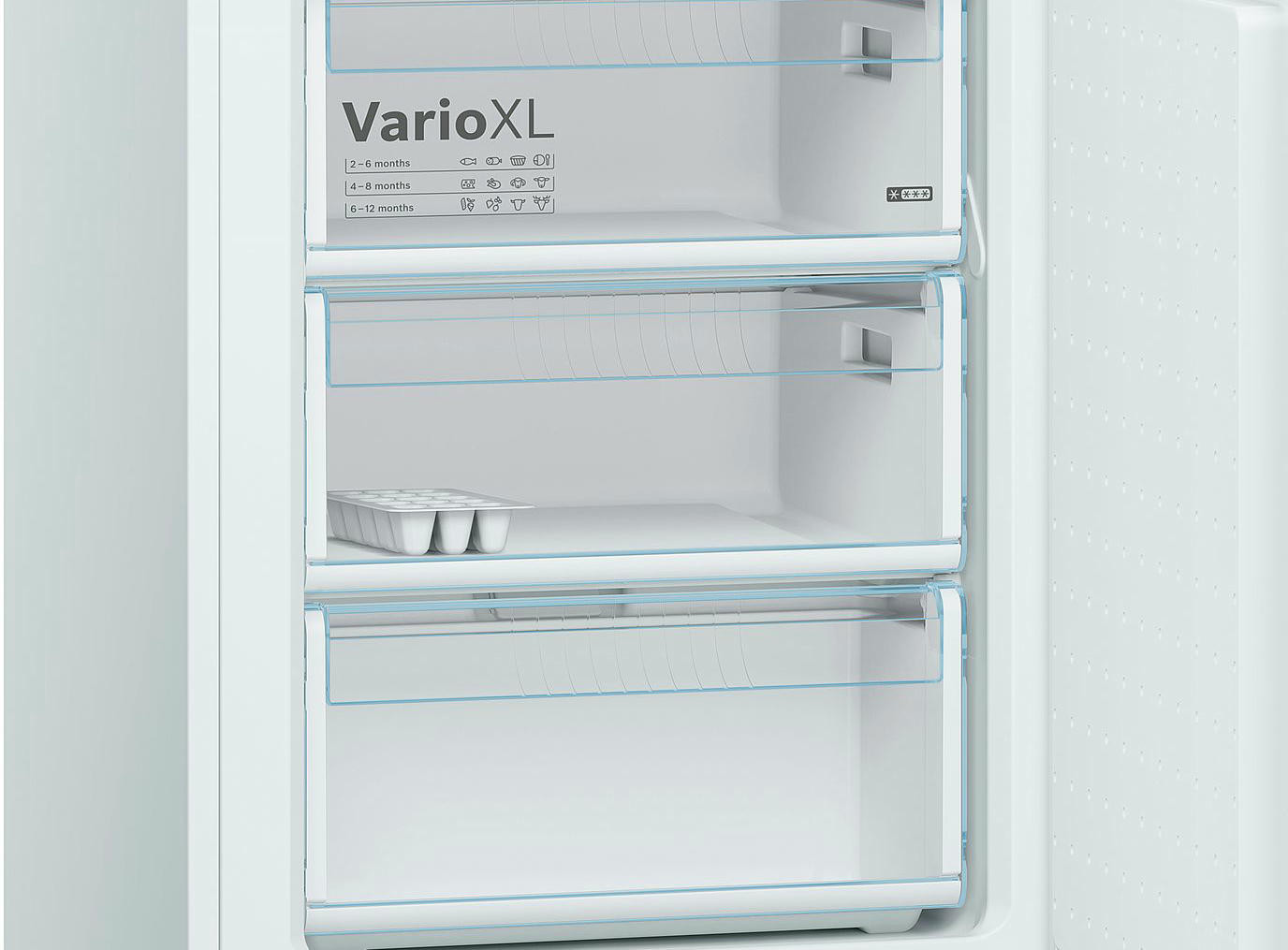 Охлаждение морозильника в Бош KGE39XW2OR происходит по технологии LowFrost. Она помогает сохранить естественную влажность в замороженных продуктах, не пересушивает и не перемораживает их. Но 1-2 раза в год вам придется совершать профилактическое обслуживание.