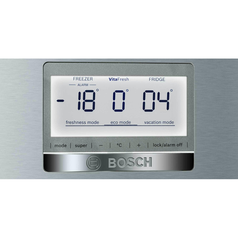 Имеет электронную систему управления и раздельную регулировку температуры в холодильном и морозильном отделении, оснащён дисплеем. Есть возможность перенавешивания двери. В холодильной камере установлена светодиодная подсветка. Мощность замораживания составляет 15 кг/сутки. В случае отключения электричества сохраняет холод в автономном режиме до 16 часов.