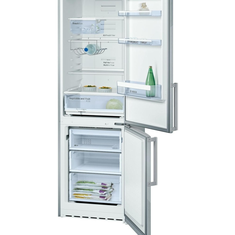 Холодильник KGN36VI13R — это большой объем и удобство размещения продуктов. Продуманная эргономика экономит время и пространство. Нержавеющая сталь корпуса обработана специальным покрытием, которое защищает поверхность от отпечатков пальцев. Морозильную камеру не надо размораживать, потому что в ней не образуется лед. Система вентиляции отводит влагу из морозильного отделения в отсек с испарителем, где она намораживается. Многопоточная система охлаждения распределяет холодный воздух равномерно по всем уровням холодильной камеры.
