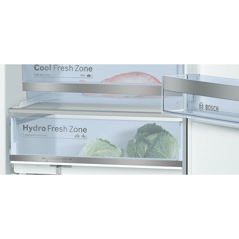Холодильник KGN39AI26R оснащен отделением hydroFresh. В боксе регулируется влажность для бережного и длительного хранения продуктов. Телескопические направляющие обеспечивают плавное и легкое выдвижение даже полностью заполненного ящика. Система NoFrost защищает холодильное и морозильное отделения от образования льда, что экономит время и силы. Стеклянные полки выдерживают большие нагрузки, легко очищаются и регулируются по высоте. Фильтр на основе активированного угля поглощает запахи, предотвращая их смешивание. ЖК-дисплей помогает контролировать работу прибора с дополнительным комфортом.