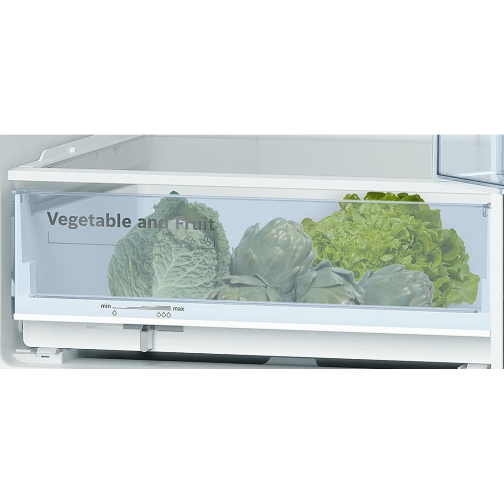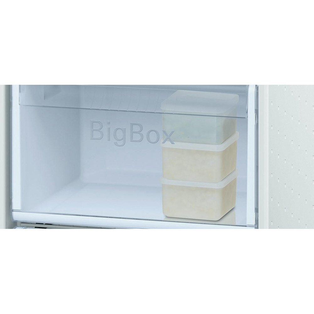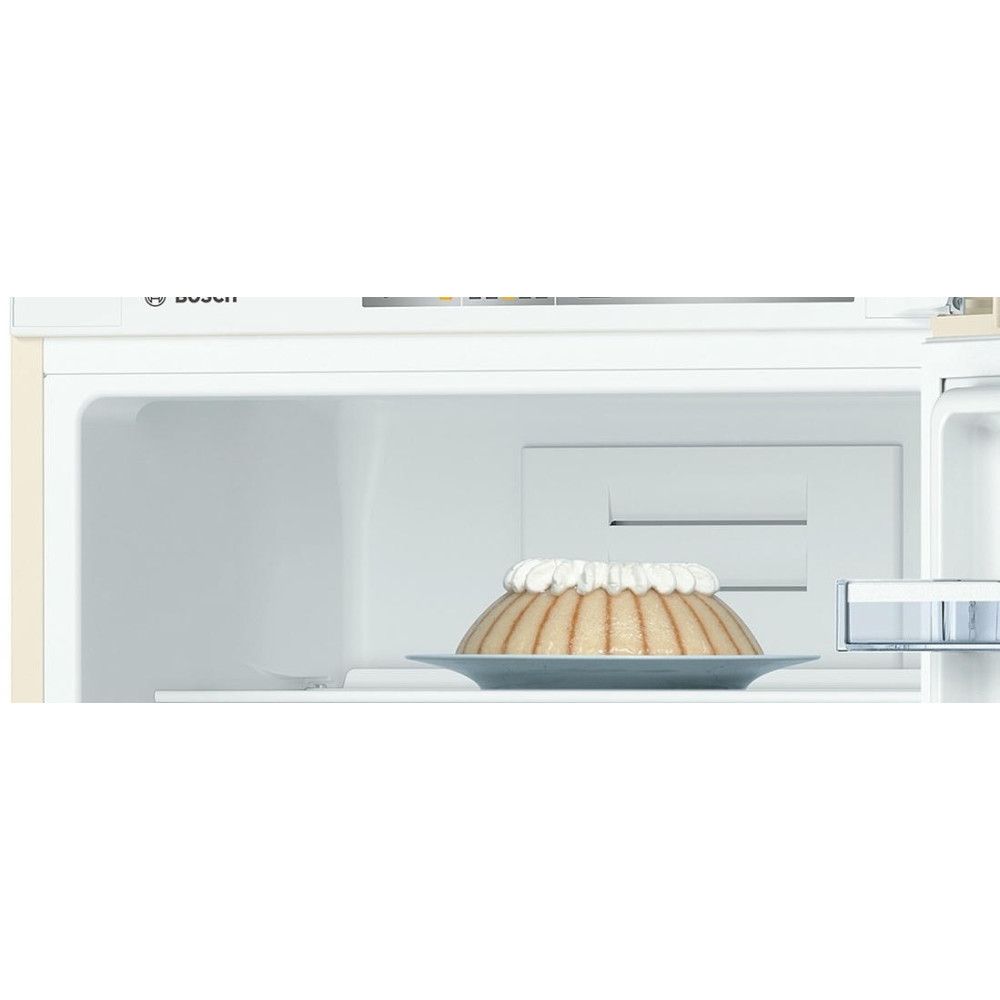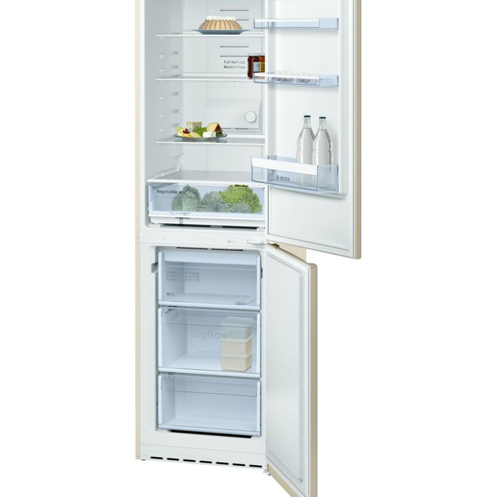 Бежевый корпус двухкамерного холодильника KGN 39NK13 R выглядит стильно и гармонично в любом интерьерном решении. Морозильное отделение оснащено тремя вместительными боксами. Ящики легко выдвигаются даже в заполненном состоянии. Температура устанавливается и изменяется с помощью удобной панели управления. Акустический сигнал тревоги повышает уровень безопасности. Стеклянные полочки выглядят эстетично, выдерживают большие нагрузки и легко чистятся.