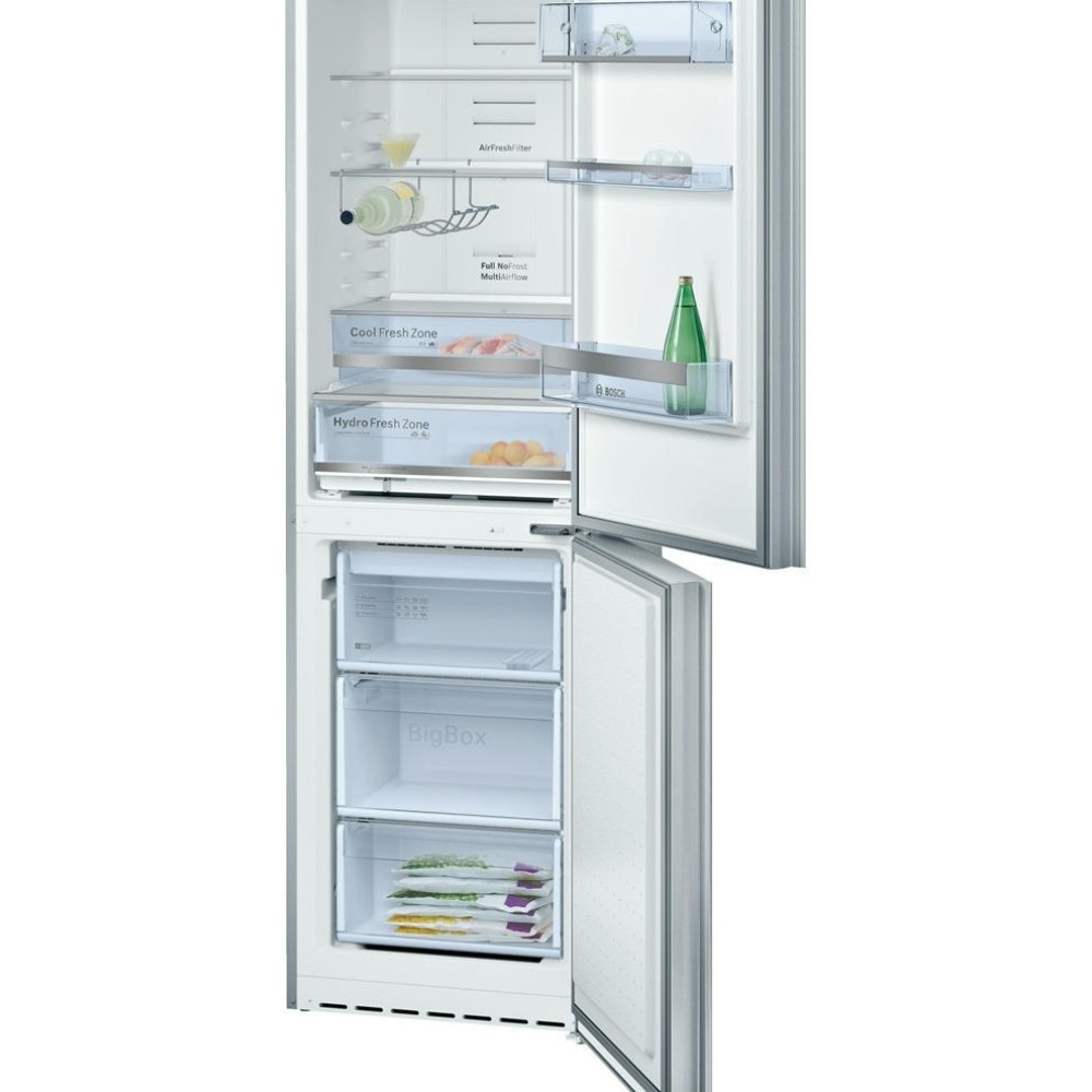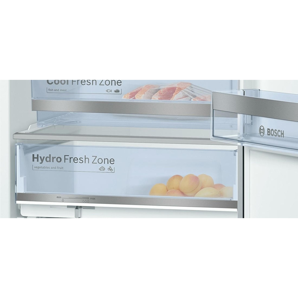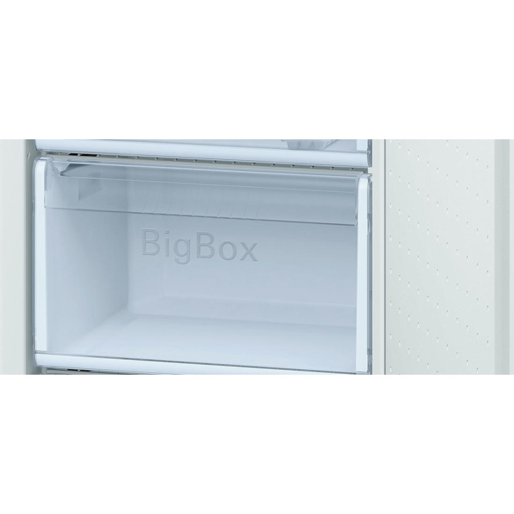 Белый двухкамерный холодильник KGN39SW10R со стеклянной поверхностью — элегантное решение от Bosch. ЖК-дисплей и электронное управление обеспечивают комфортную эксплуатацию. Отделение для бутылок и ящик для овощей и фруктов — практичные и полезные дополнения. Регулируемые полки позволяют создавать индивидуальные комбинации. Зона Chiller сохраняет мясо и рыбу свежими до 2-х раз дольше. Систем NoFrost защищает морозильное отделение от образования льда.