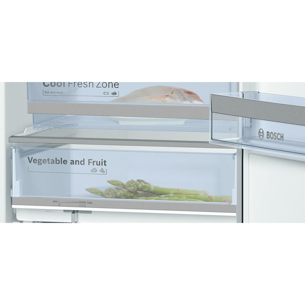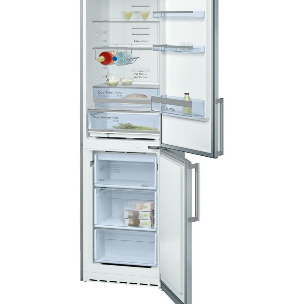 Двухкамерный холодильник KGN39XL14R с технологией No Frost — полное отсутствие льда в морозильной камере. Раздельное электронное управление в холодильном и морозильном отделениях обеспечивают два контура охлаждения. Температуру можно легко устанавливать и изменять с помощью удобной панели управления на дверце холодильника. Антибактериальный фильтр устраняет неприятные запахи и бактерии. Режим «Суперзамораживание» понижает температуру в морозильном отделении. Это особенно важно после помещения большого количества свежих продуктов. Безопасный хладагент R600a не разрушает озоновый слой и не провоцирует парниковый эффект.