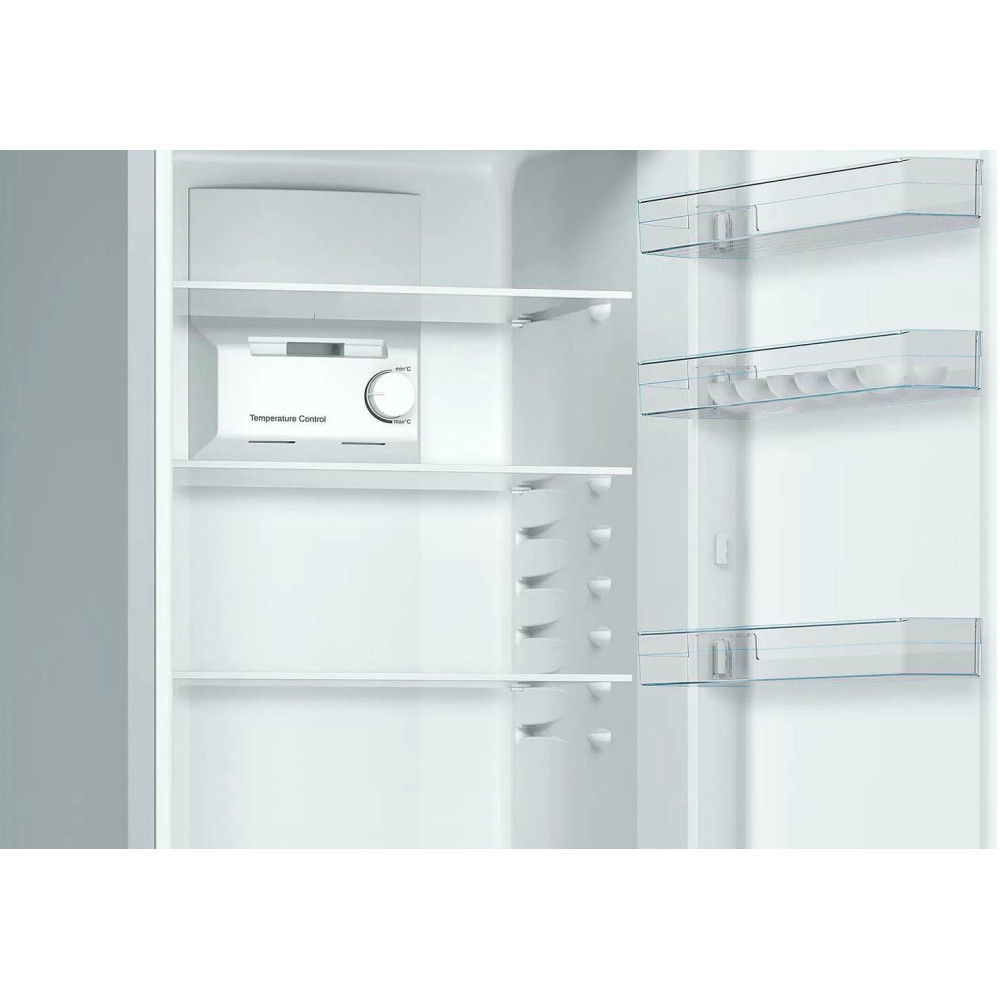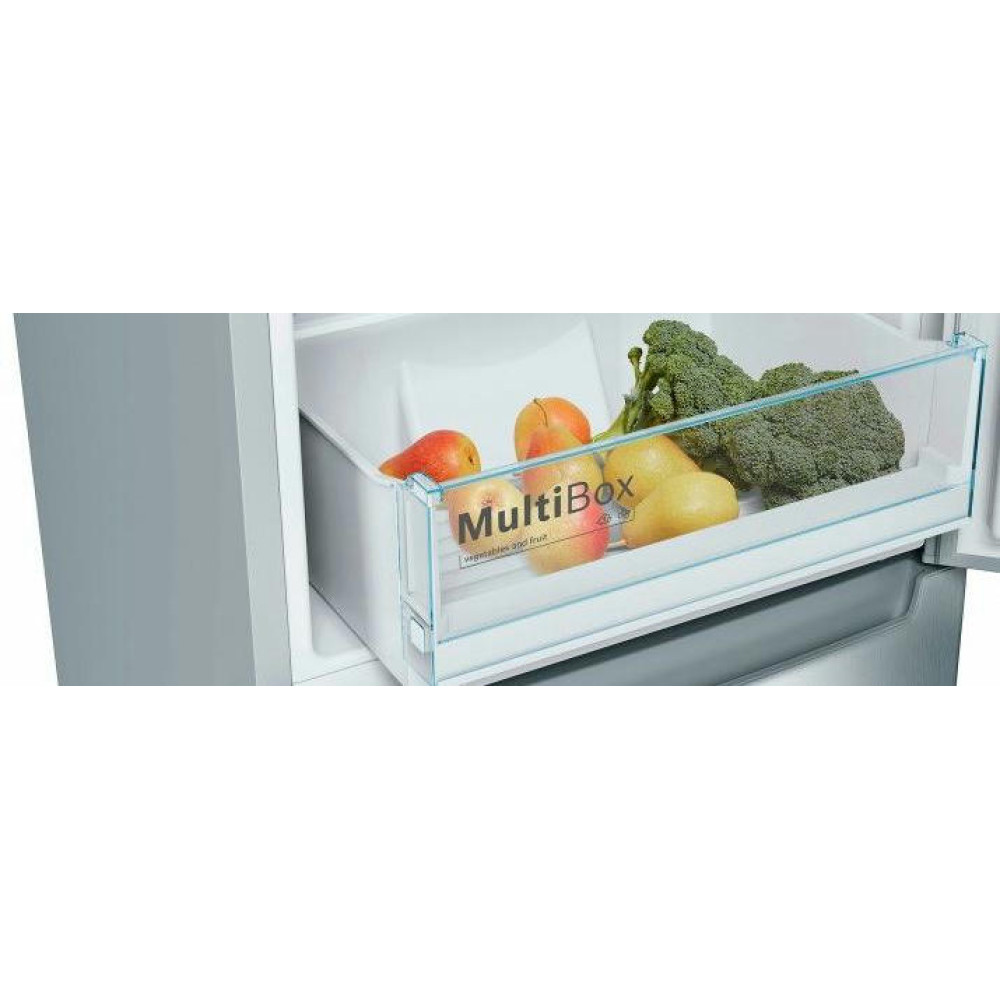 Двухкамерный холодильник Bosch KGN36NL306 — отдельностоящий прибор, имеющий 1 стандартный компрессор. Благодаря системе NoFrost снижается влажность, а значит, лишняя вода не оседает на стенках и не превращается в наледь. Функция FreshSense постоянно контролирует и поддерживает температуру в холодильном и морозильном отделениях. В выдвижном контейнере MultiBox будет удобно хранить овощи и фрукты.