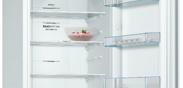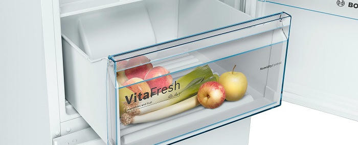 Холодильная камера модели оснащена 4 полками из ударопрочного стекла: две из них зафиксированы, две другие можно перемещать по высоте. Загружать и доставать продукты гораздо удобнее благодаря выдвижным полкам EasyAccess. Ящик VitaFresh сохраняет свежесть продуктов до 3 раз дольше, поддерживая наиболее оптимальную температуру и уровень влажности. На двери расположены 3 полки, на которых есть металлические аппликации. Свежесть обеспечивает угольный фильтр AirFresh, абсорбирующий неприятные запахи и нейтрализующий действие бактерий.
