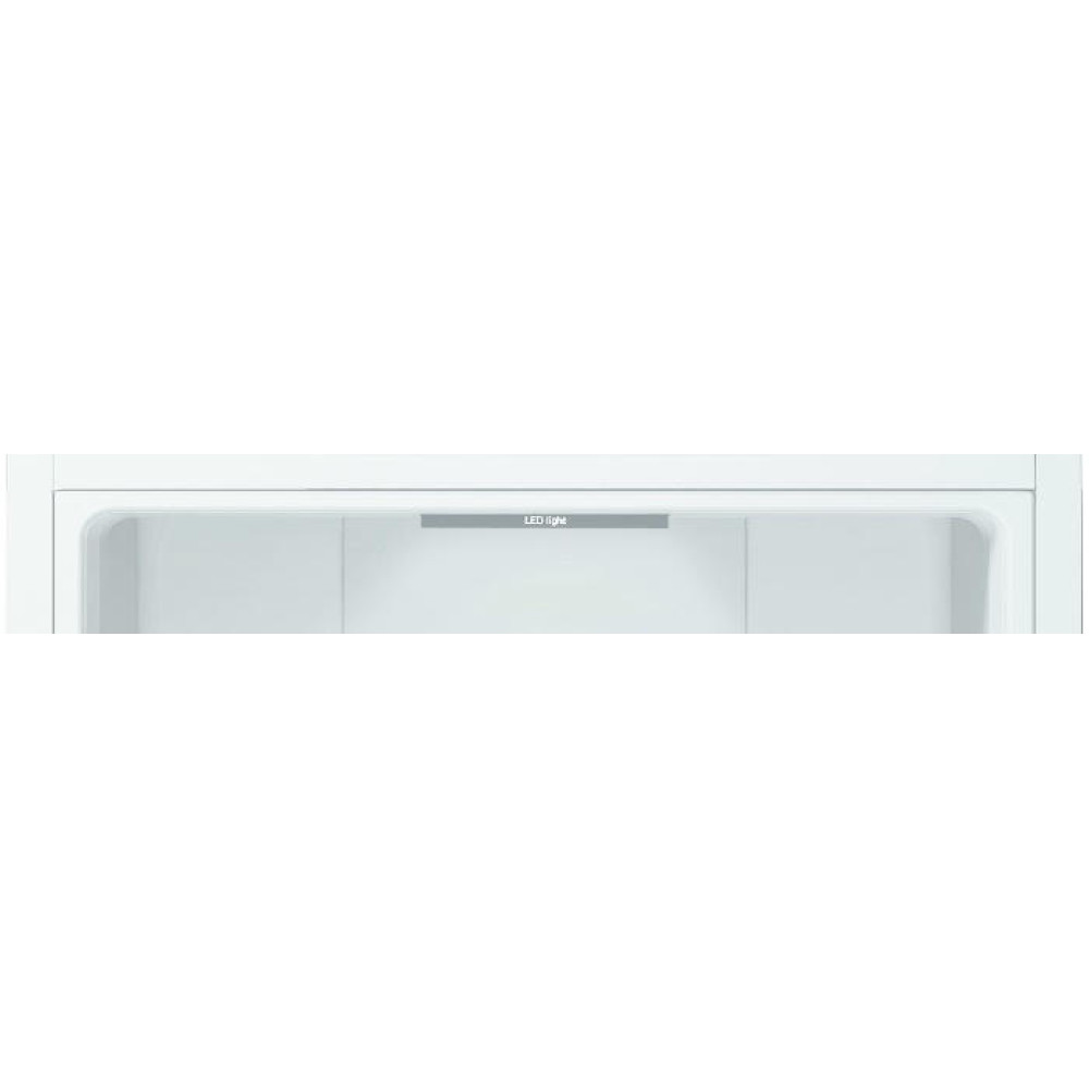 Электронная панель управления расположена сверху, там же находится встроенная светодиодная подсветка. В Бош KGN36NW21R встроены такие удобные опции, как: