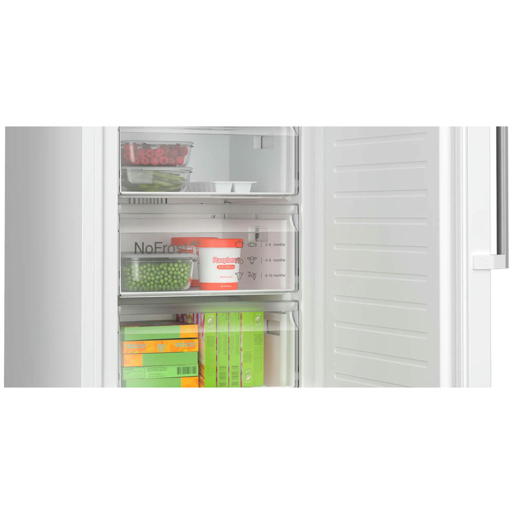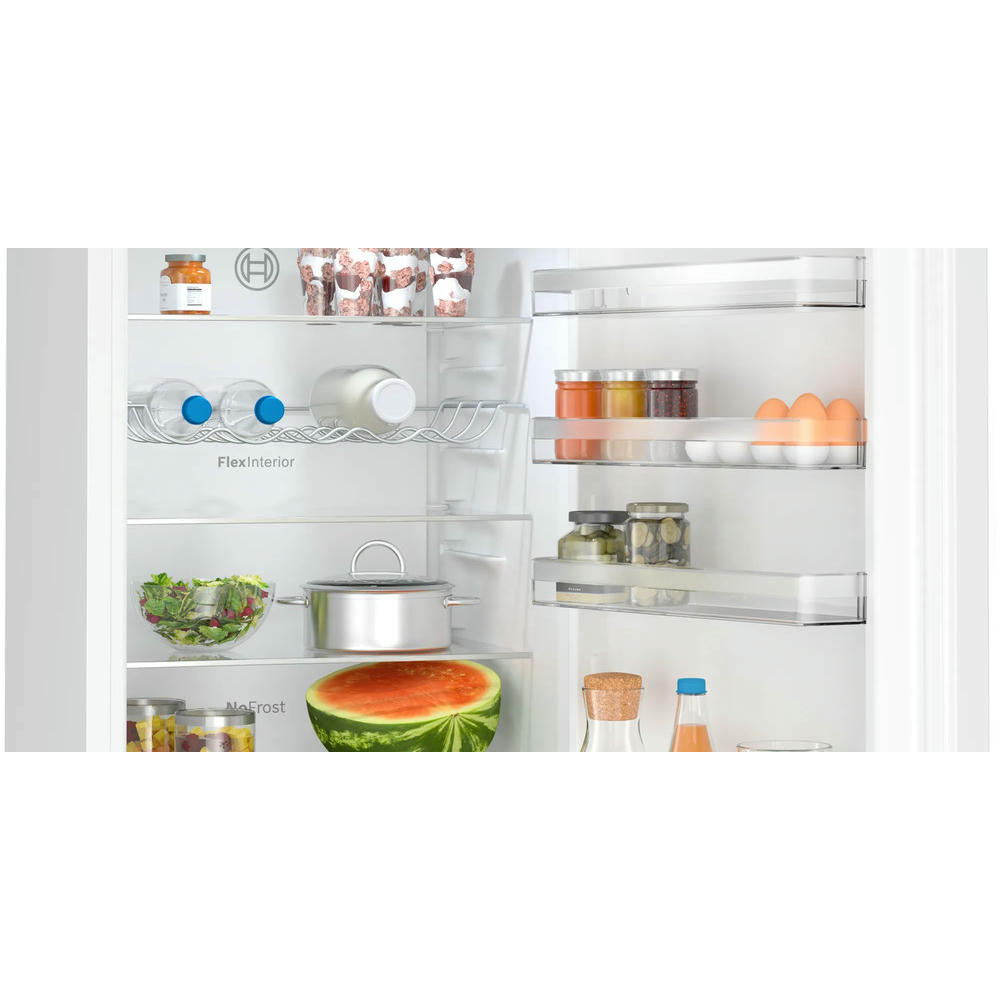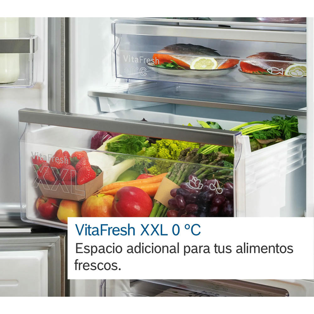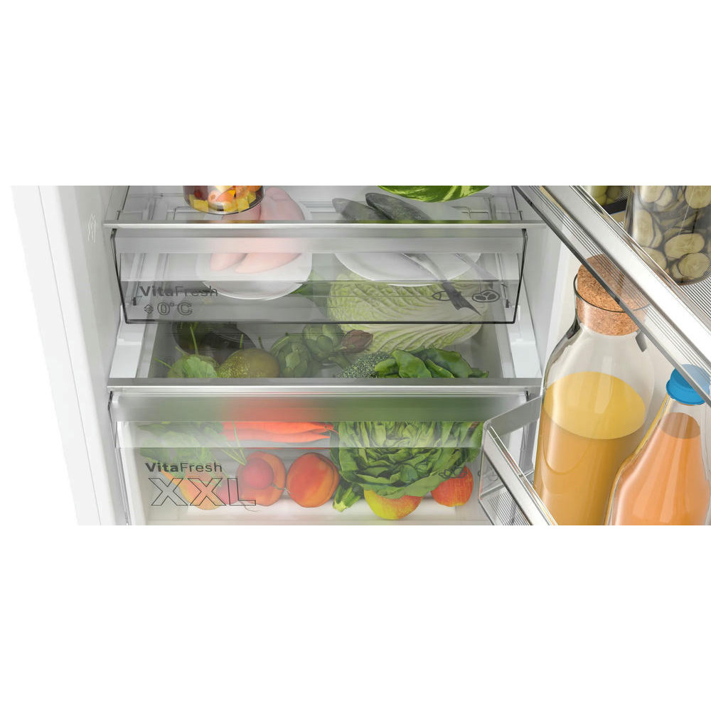 Двухкамерный холодильник Bosch KGN397WCT - это высокотехнологичное устройство, которое сочетает в себе функциональность, элегантный дизайн и надежность. Общий полезный объем 363 литра, что делает его идеальным выбором для больших семей. Электронное управление с сенсорными элементами и дисплеем делает использование холодильника удобным и простым. Также он оснащен функцией Home Connect, которая позволяет управлять устройством дистанционно с помощью смартфона или планшета. Система охлаждения No Frost обеспечивает равномерное распределение холода внутри холодильника, предотвращая образование льда и инея. Автоматическая система размораживания упрощает обслуживание и эксплуатацию. Система MultiAirflow обеспечивает оптимальное распределение температуры, сохраняя продукты свежими дольше.