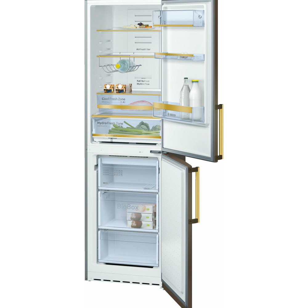 Модель Бош KGN39AD18R выделяется в первую очередь своим внешним видом. Теплый густой оттенок горячего шоколада отлично сочетается с большинством современной бытовой техники и мебели и придает кухонному интерьеру необычность. К тому же на нем менее заметны пыль, капли воды и отпечатки пальцев, а значит и протирать корпус нужно намного реже.