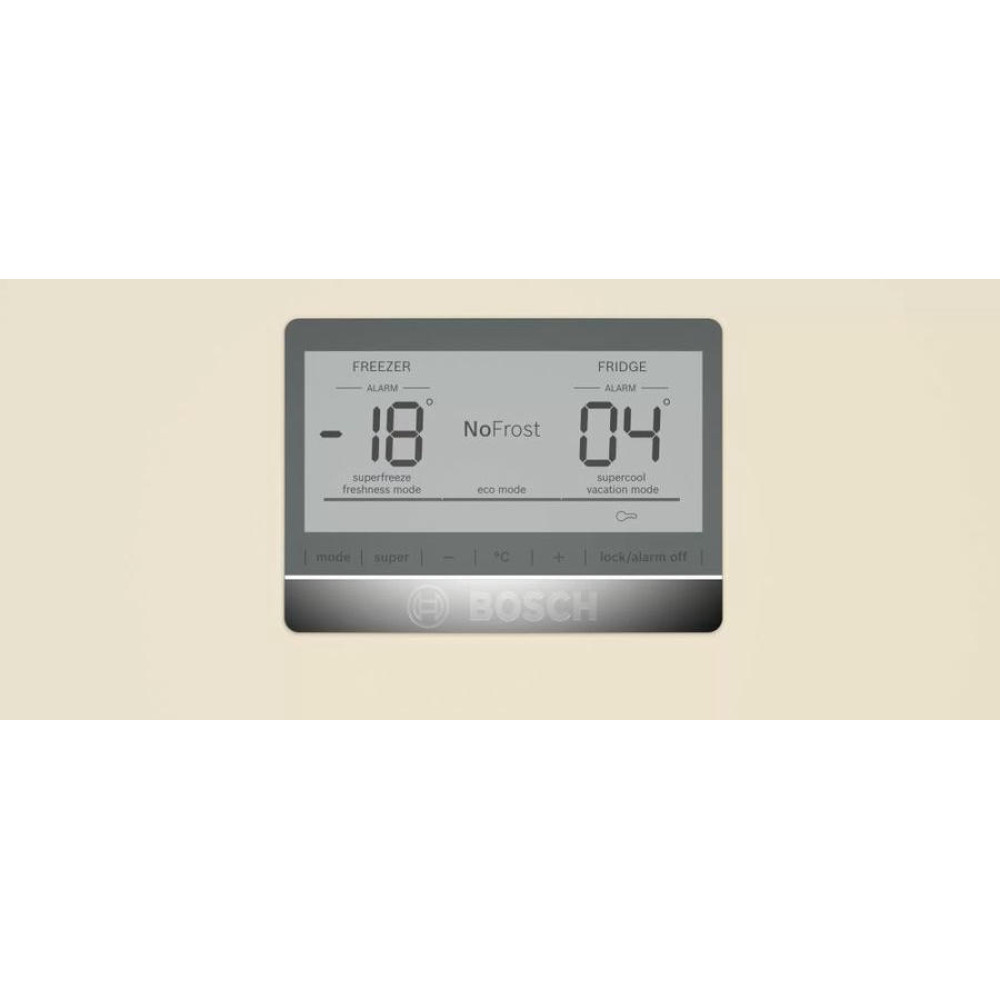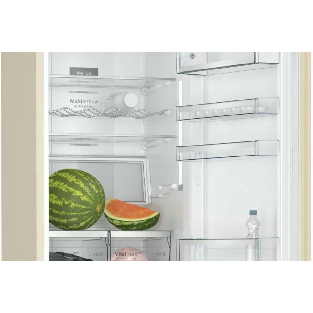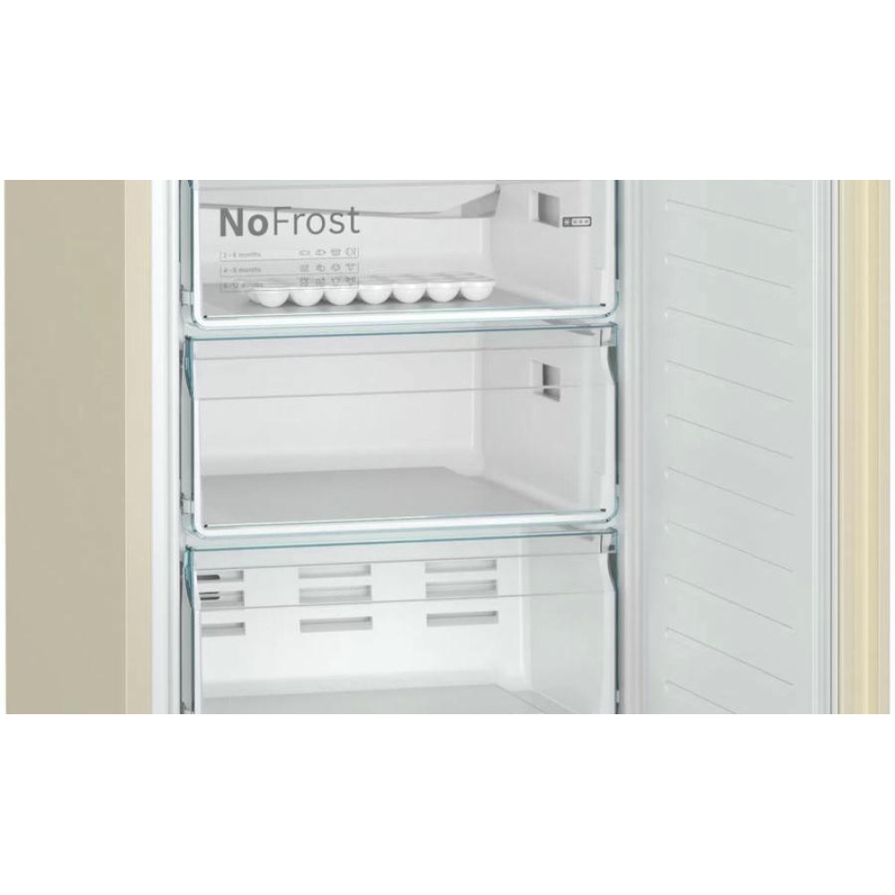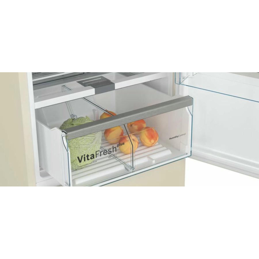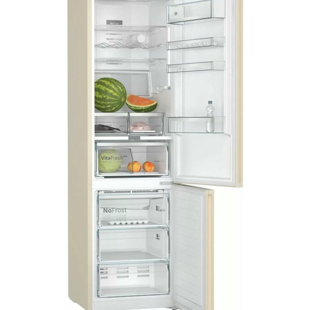 Двухкамерный холодильник Bosch KGN39AK32R выполнен в пастельном бежевом цвете и оборудован правым дверным упором с возможностью перенавешивания двери. Прибор оборудован системой охлаждения NoFrost, поэтому его нет необходимости размораживать. Для эффективного хранения овощей и фруктов в холодильной камере предусмотрена зона свежести VitaFresh, при температуре около 0°C продукты сохраняют витамины и привлекательный внешний вид в 2-3 раза дольше.
