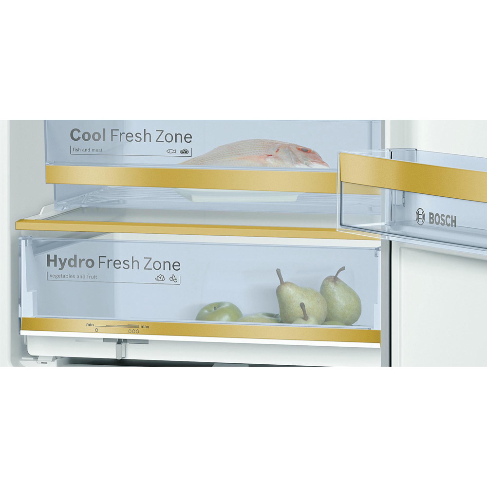 - зона с контролируемой влажностью VitaFresh оборудована выдвижным контейнером на телескопических направляющих. Вы сможете быстро загружать в него свежие овощи и фрукты, а волнистое дно не даст выступившему конденсату контактировать с их поверхностью;