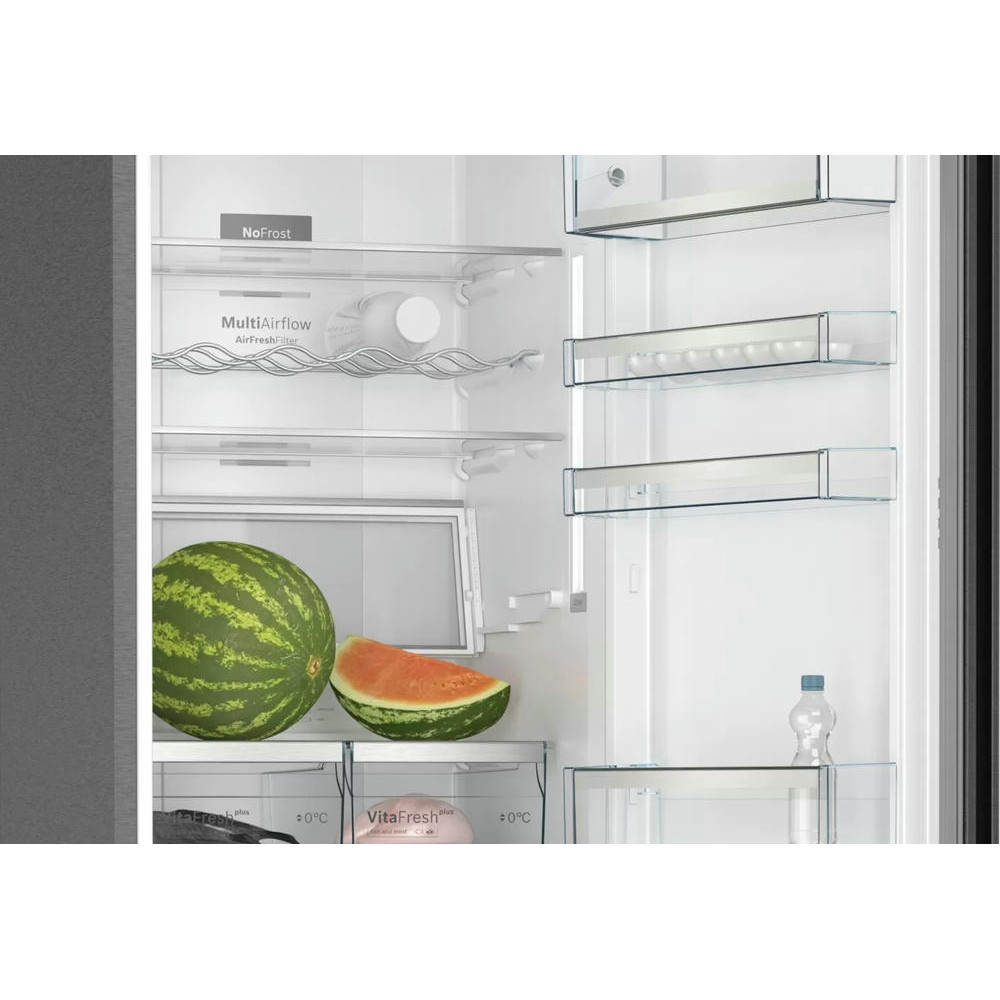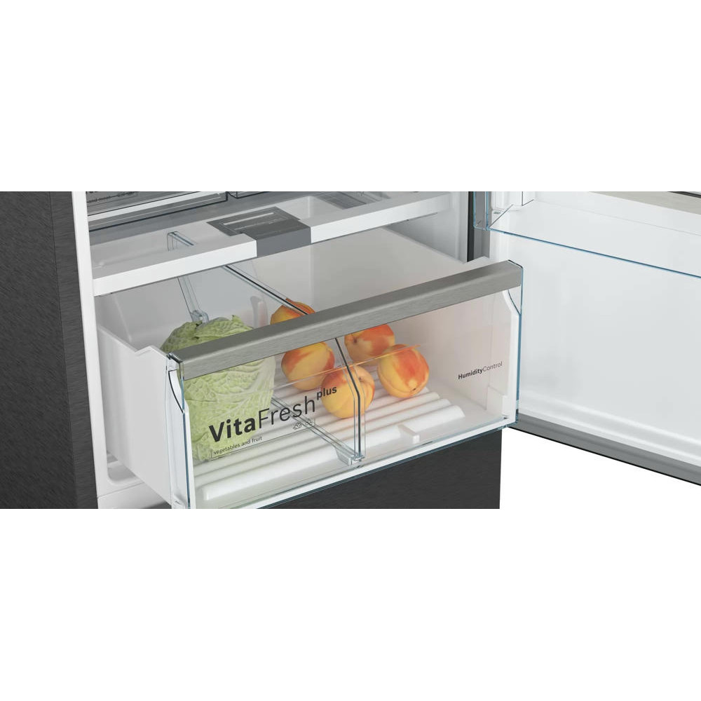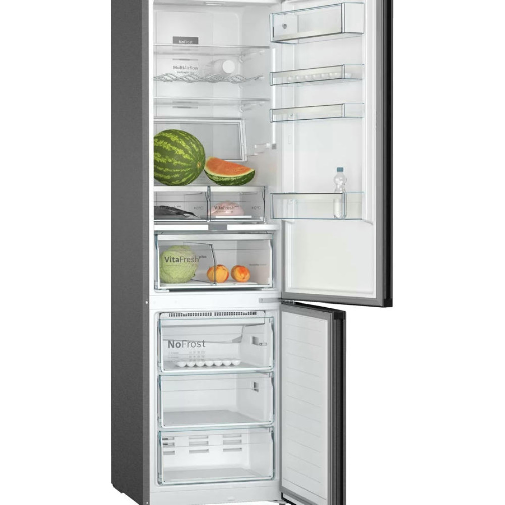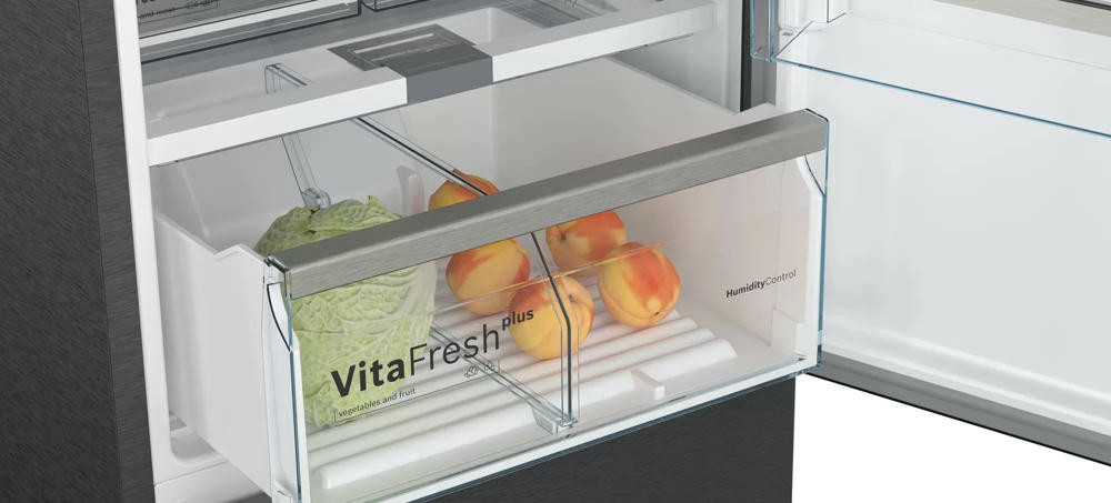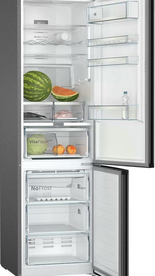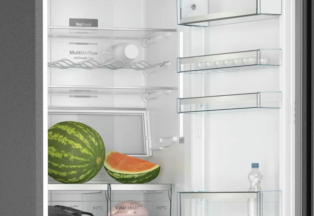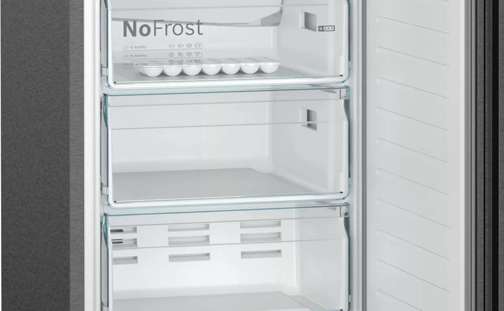 Двухкамерный холодильник Bosch KGN39AX32R выполнен в модном цвете "чёрная нержавеющая сталь" и имеет на стенках и дверце специальное покрытие от отпечатков пальцев. С помощью приложения Home Connect вы сможете задать необходимые настройки температуры и режима прямо со своего смартфона или планшета, а если дверца холодильника останется открытой, то вы немедленно получите уведомление на своё мобильное устройство.